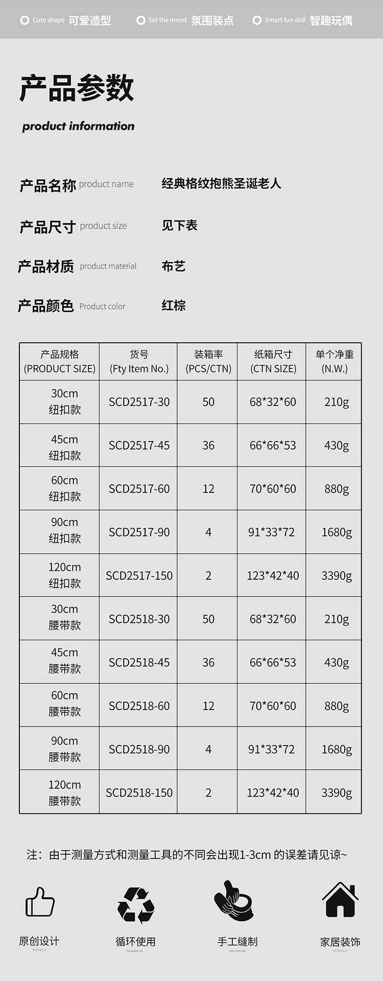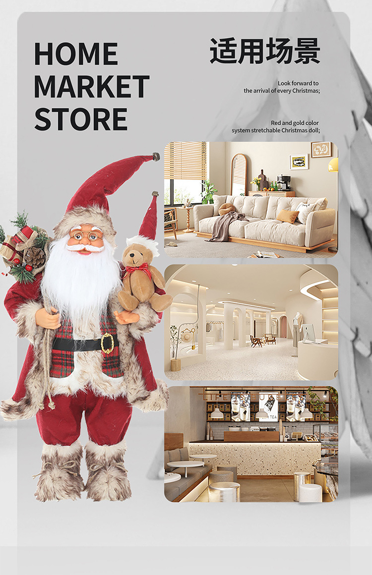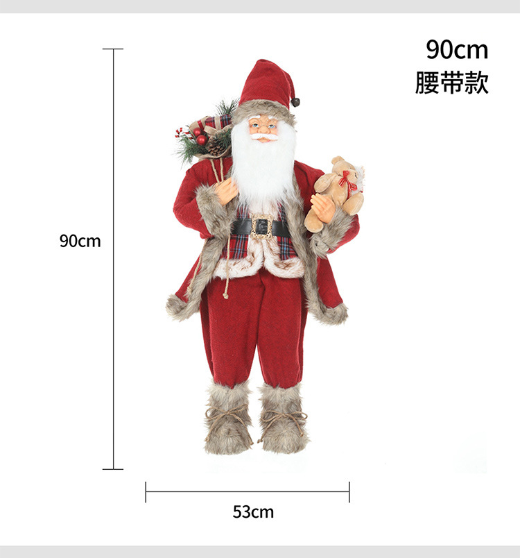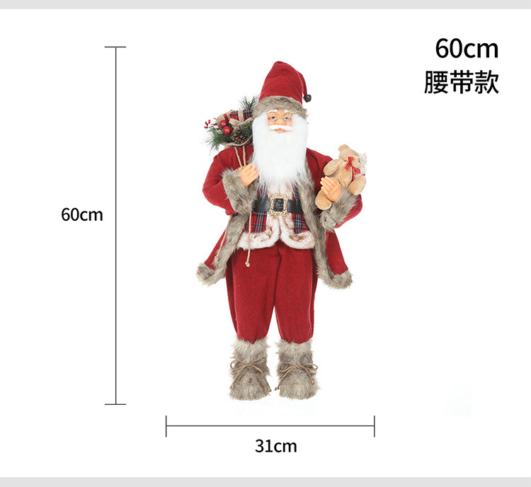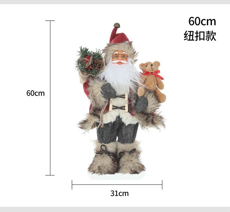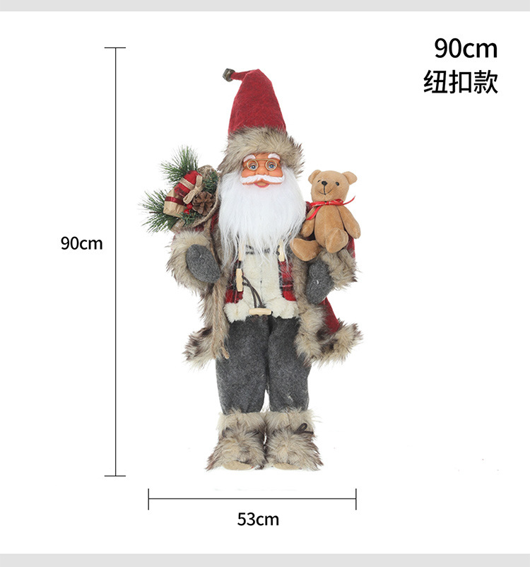 新品圣诞节装饰圣诞老人玩偶抱熊毛绒公仔摆件圣诞工艺品