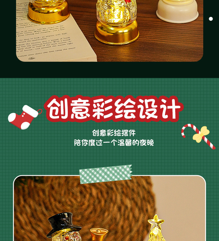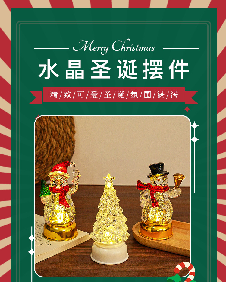 圣诞节装饰品场景布置摆件创意平安夜礼物发光小夜灯圣诞树水晶球