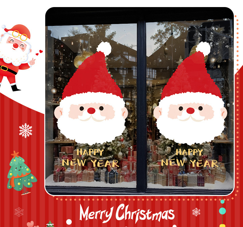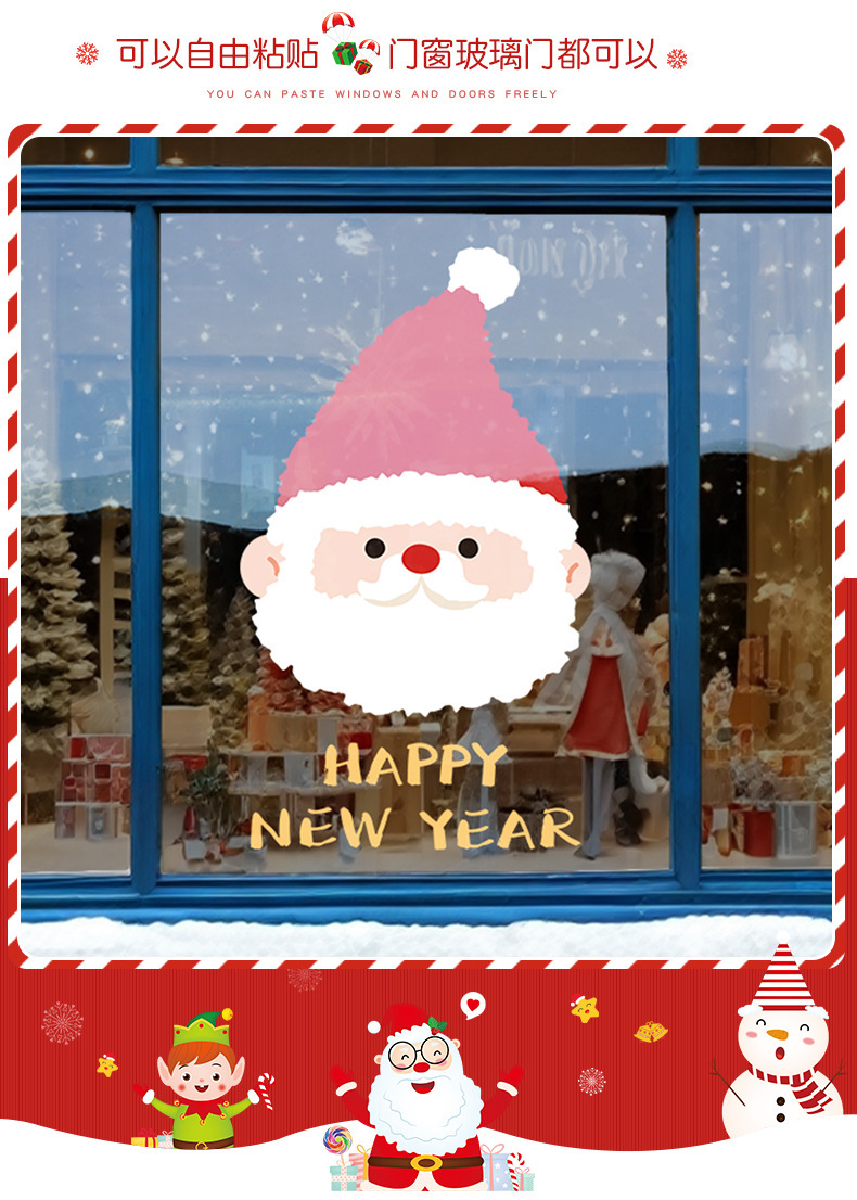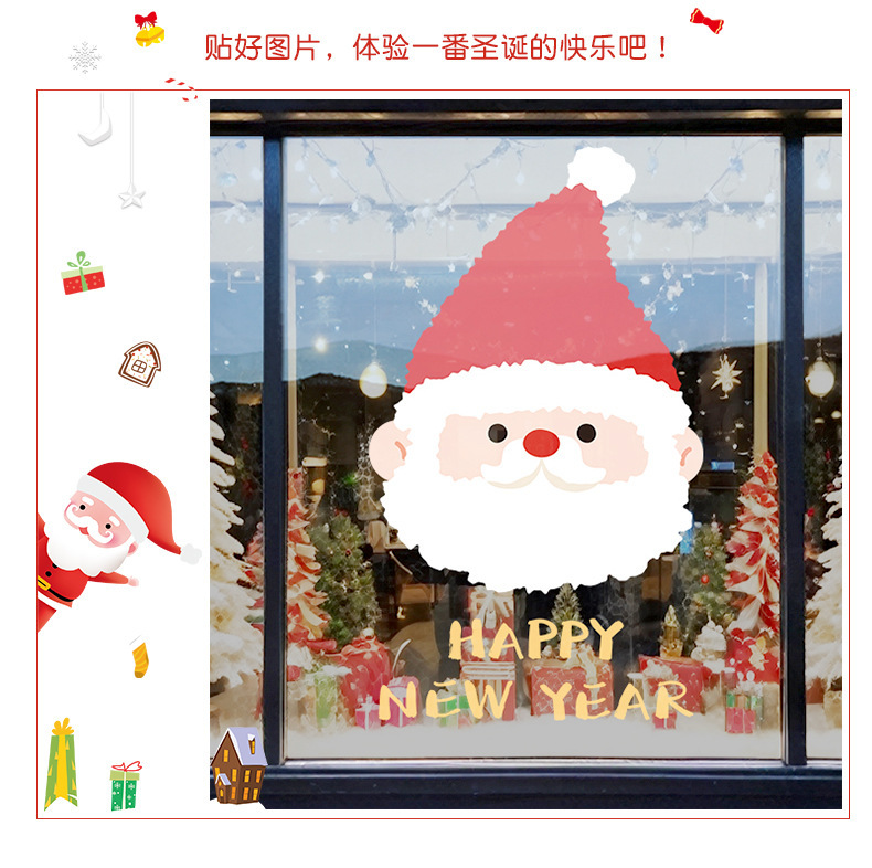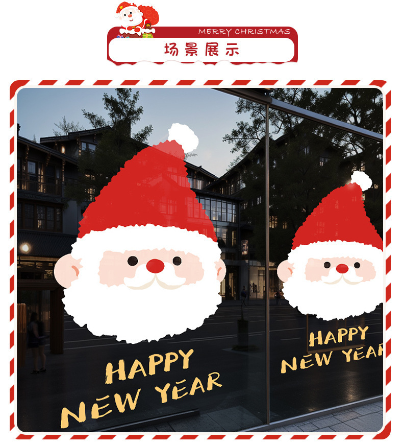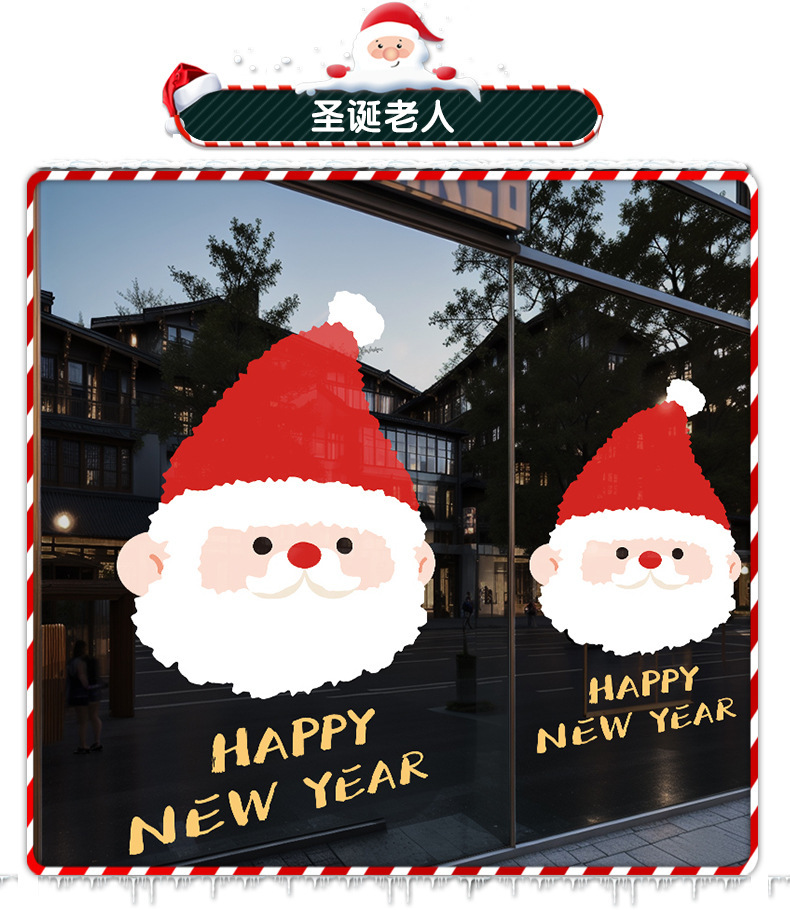 圣诞节圣诞老人推门玻璃贴纸静电贴商场橱窗场景布置装饰整张窗花