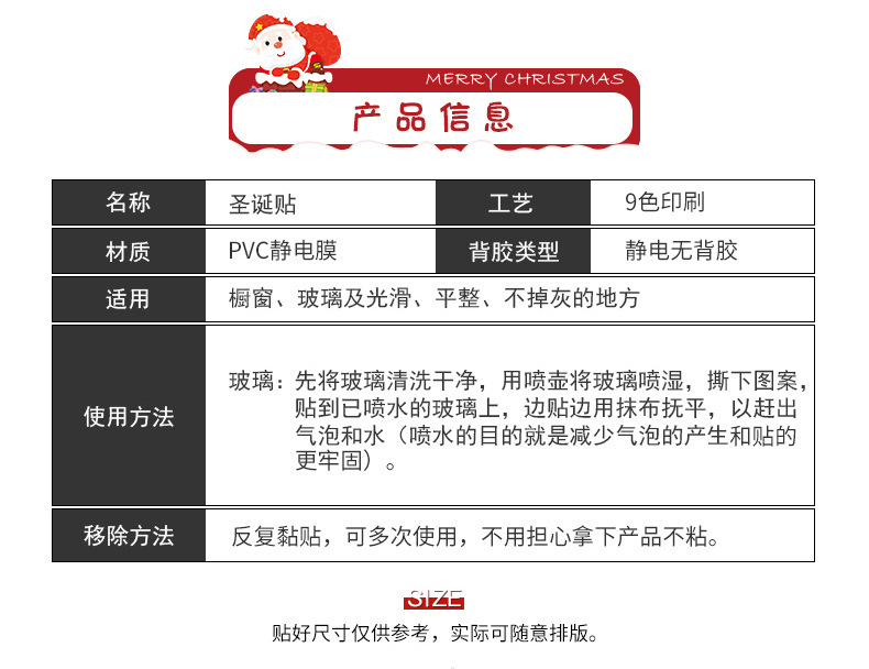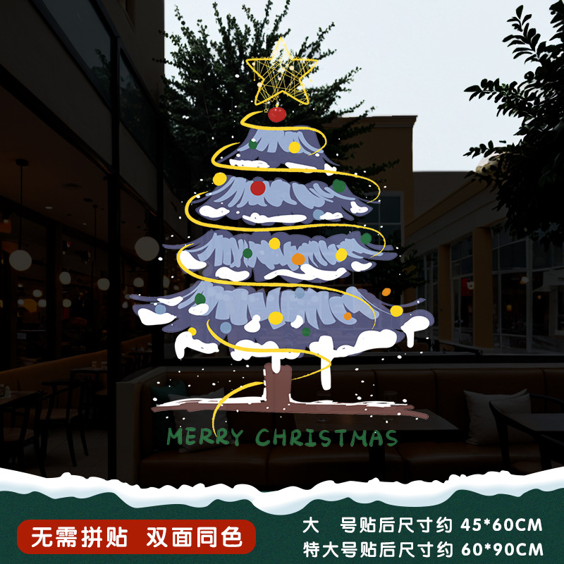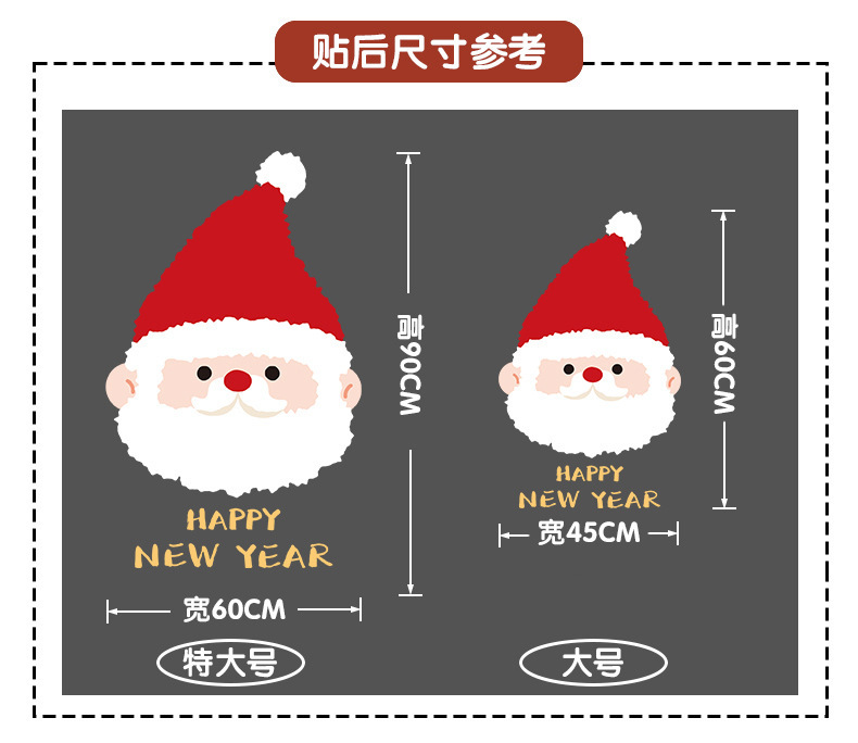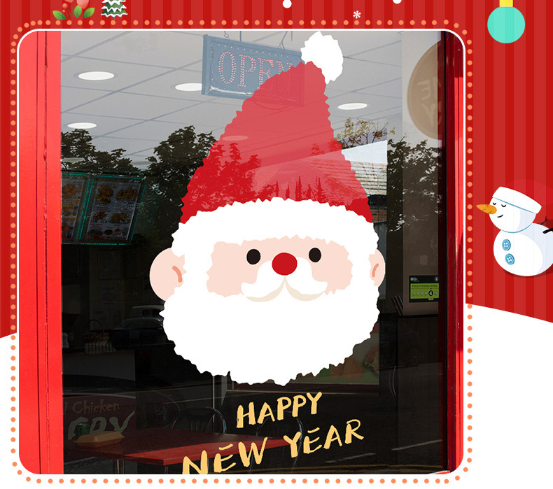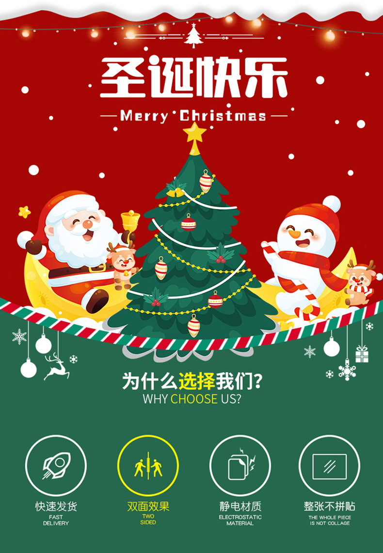 圣诞节圣诞老人推门玻璃贴纸静电贴商场橱窗场景布置装饰整张窗花