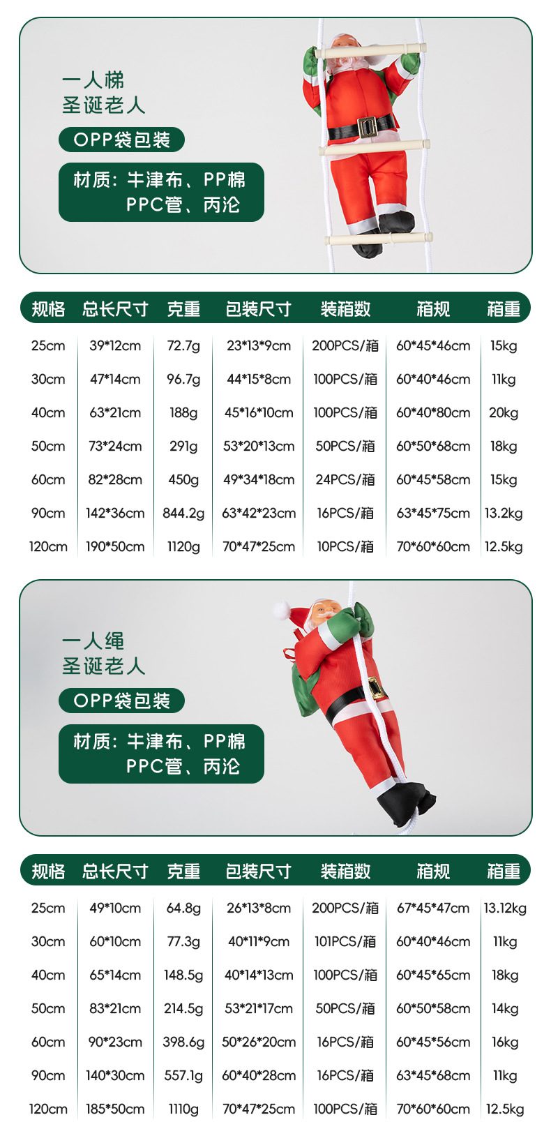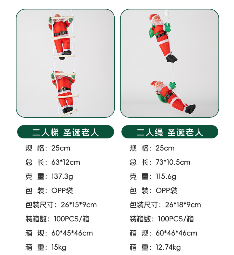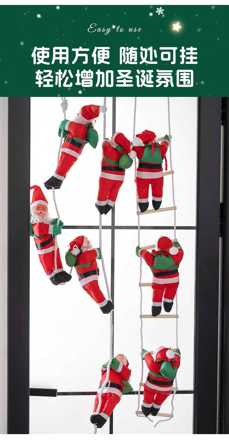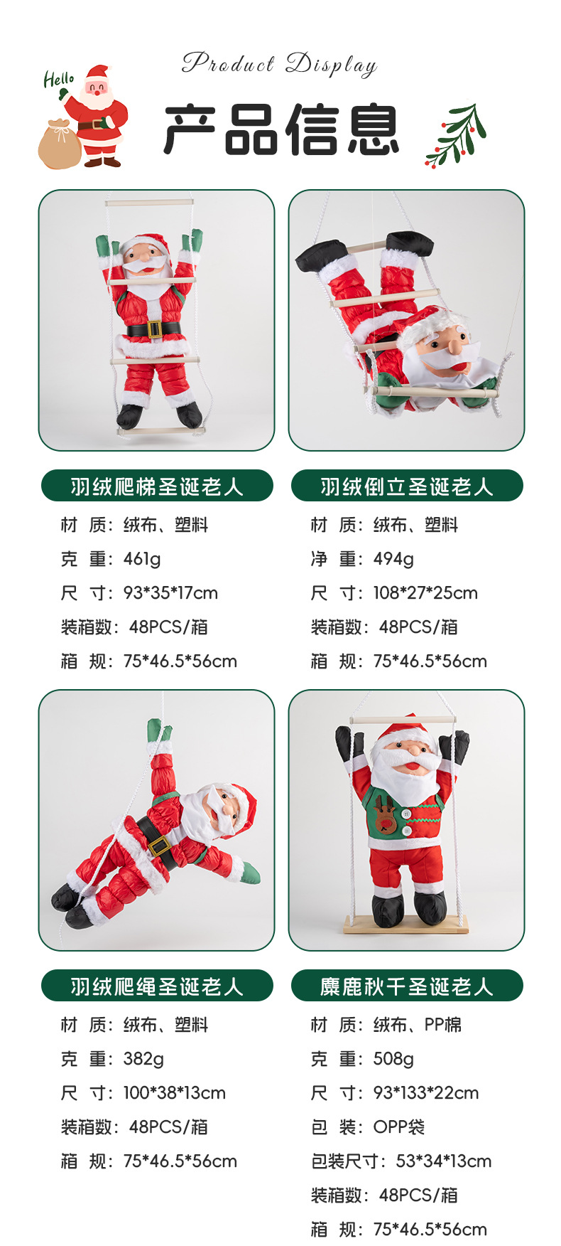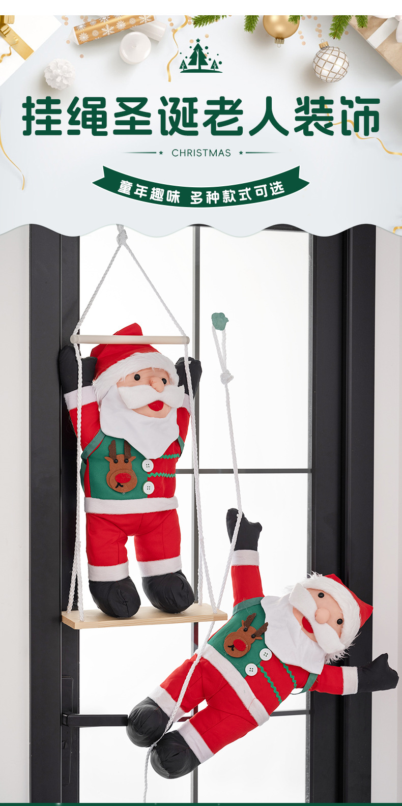 圣诞老人公仔圣诞装饰品爬梯爬绳圣诞老人圣诞装饰橱窗挂件