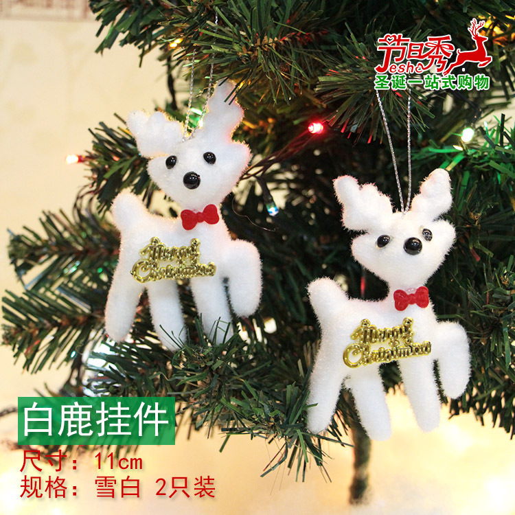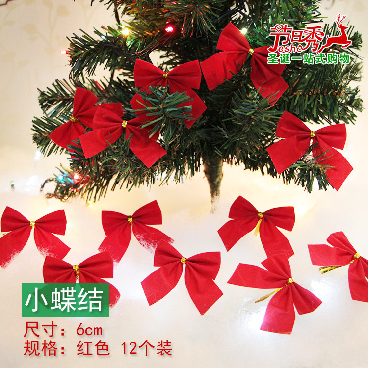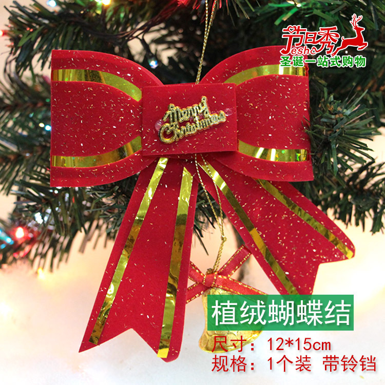 圣远新品圣诞节装饰酒红色植绒花环蝴蝶结麋鹿挂件圣诞树装饰挂饰