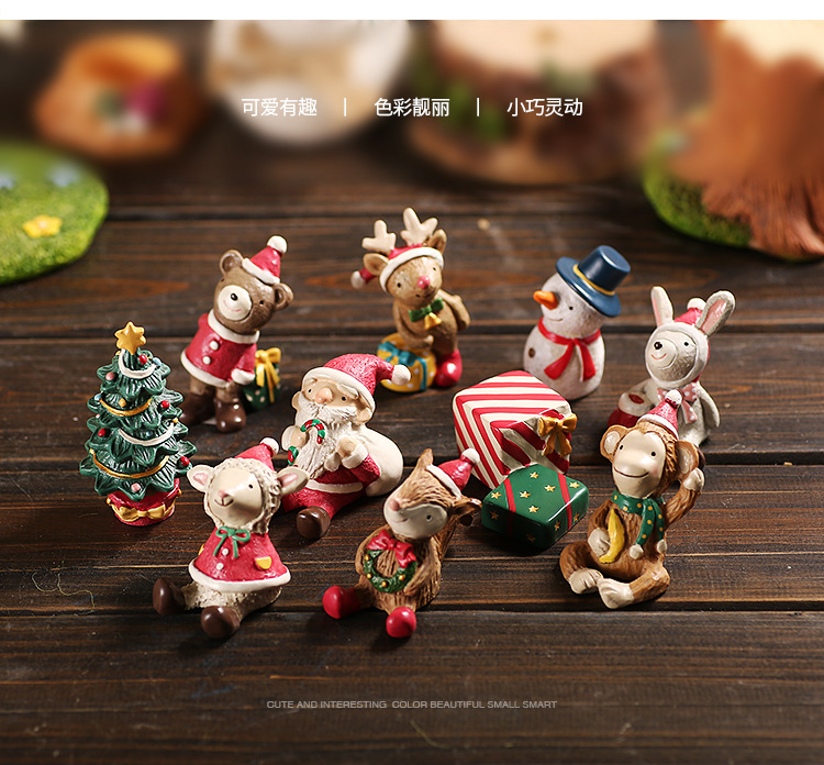 圣诞可爱手工摆件 圣诞老人家居装饰桌面车载树脂小摆件工艺品
