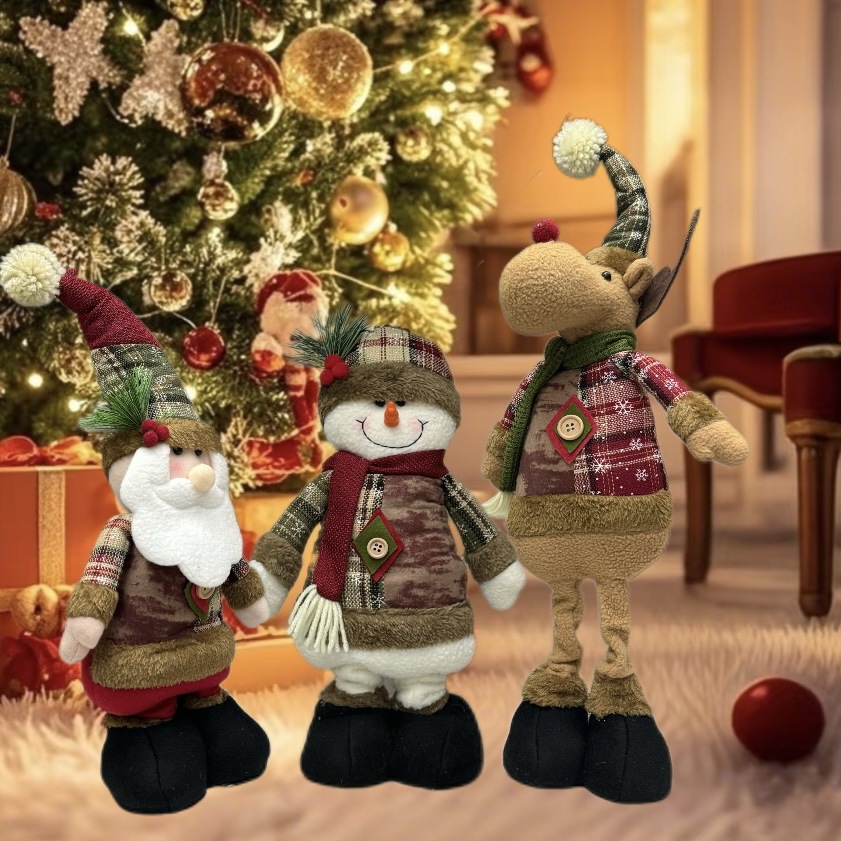 圣诞公仔圣诞伸缩老人雪人麋鹿圣诞节装饰用品圣诞节氛围感装饰品