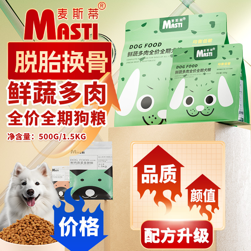 麦斯蒂狗粮500g/1.5kg蔬菜多肉成幼犬全价通用型狗粮