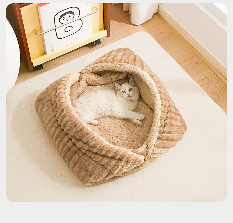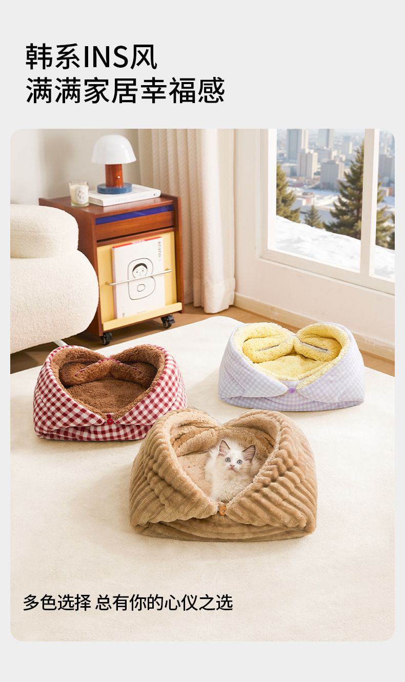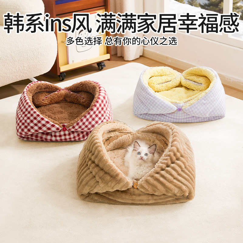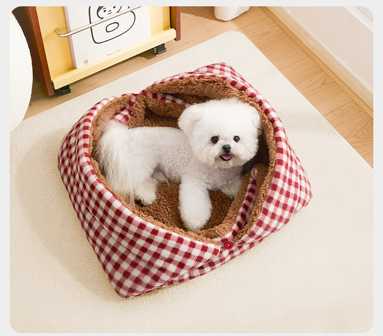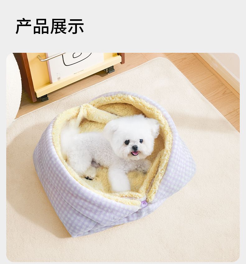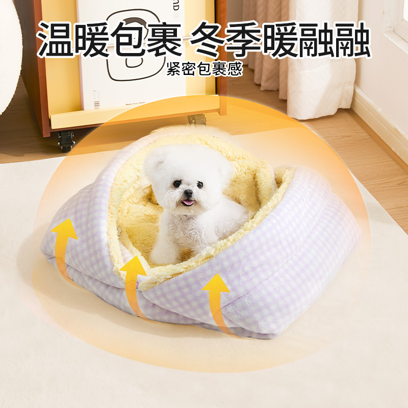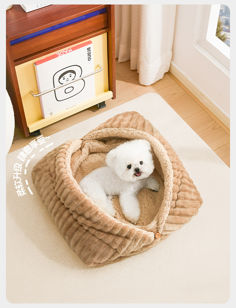 狗窝冬天保暖半封闭式小型犬比熊沙发宠物床毛毯垫子猫窝