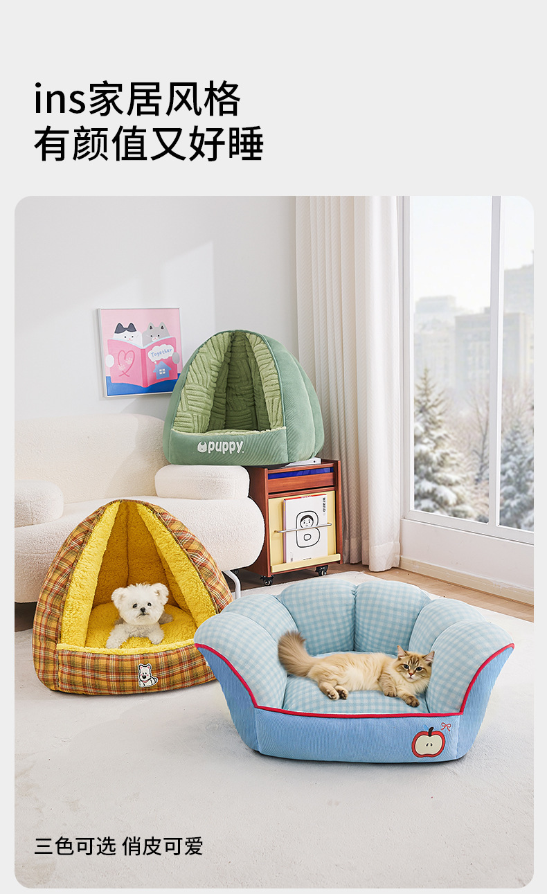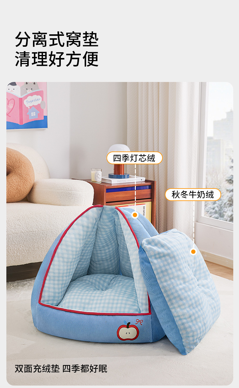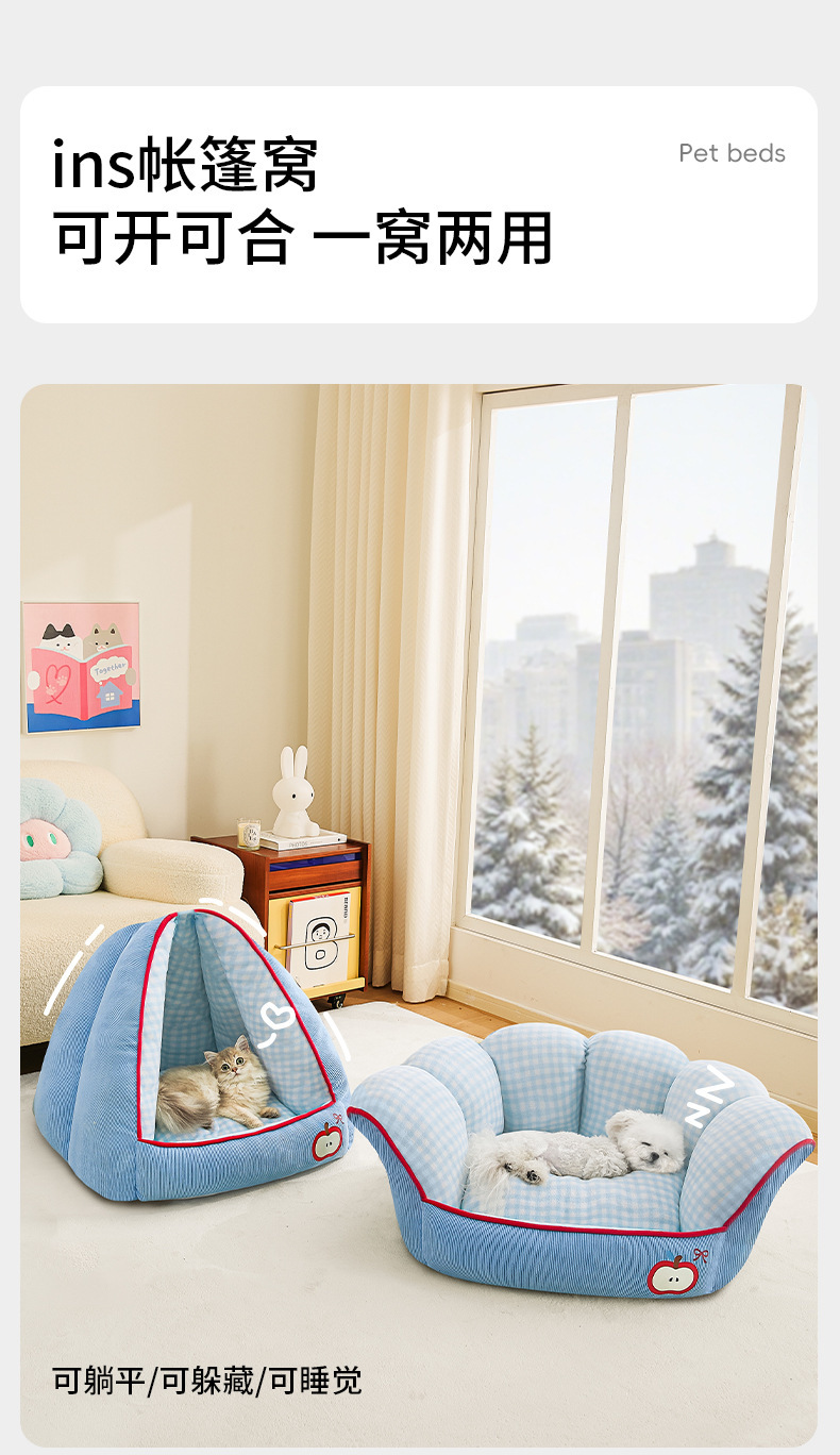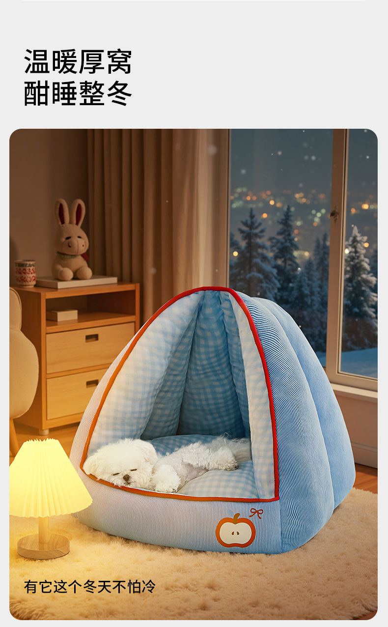 狗窝冬天保暖半封闭安全感窝垫两用小型犬睡觉的四季通用