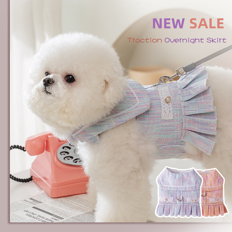小香风带牵引绳连衣裙狗狗裙子春夏秋小型犬泰迪衣服四季宠物服装