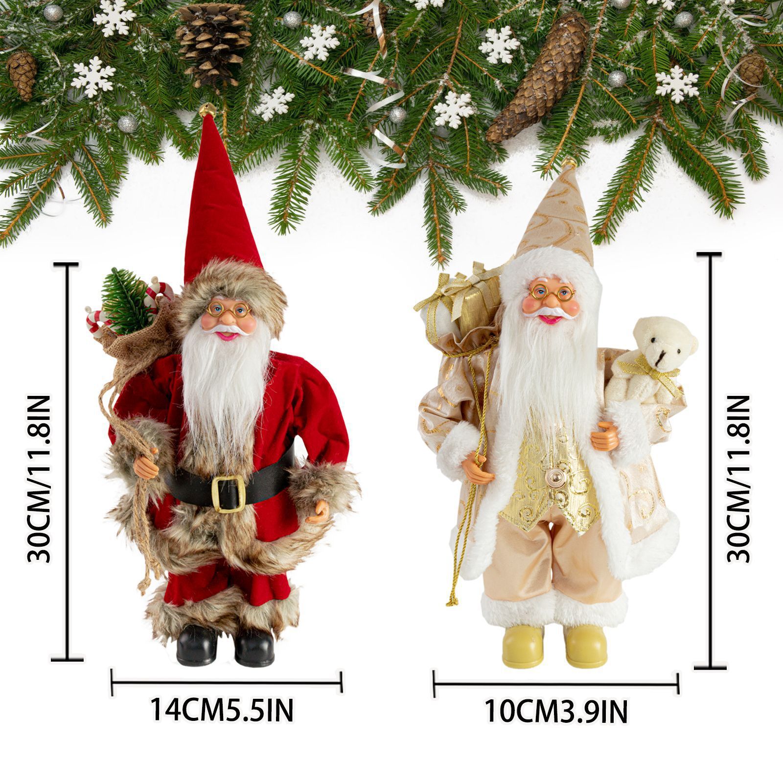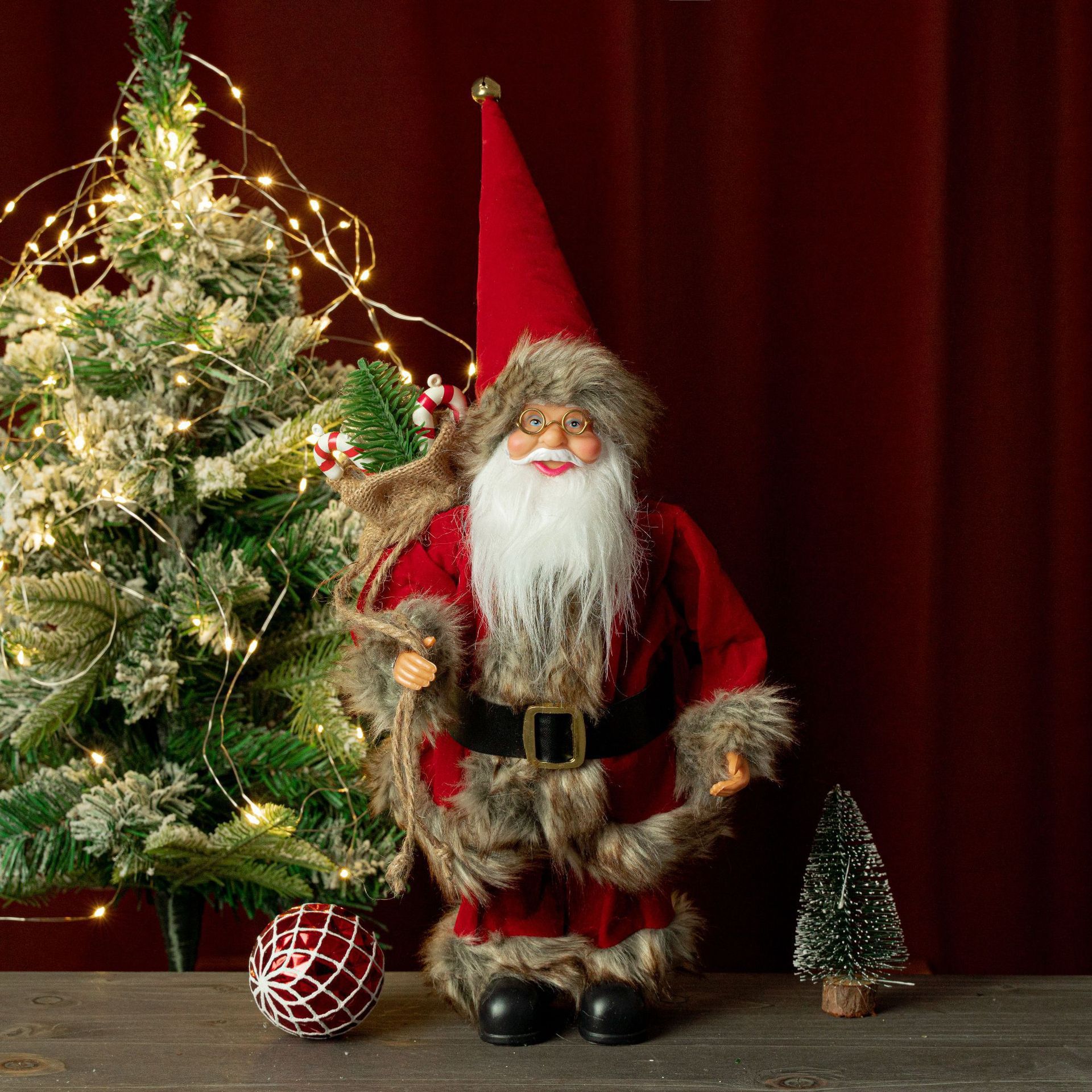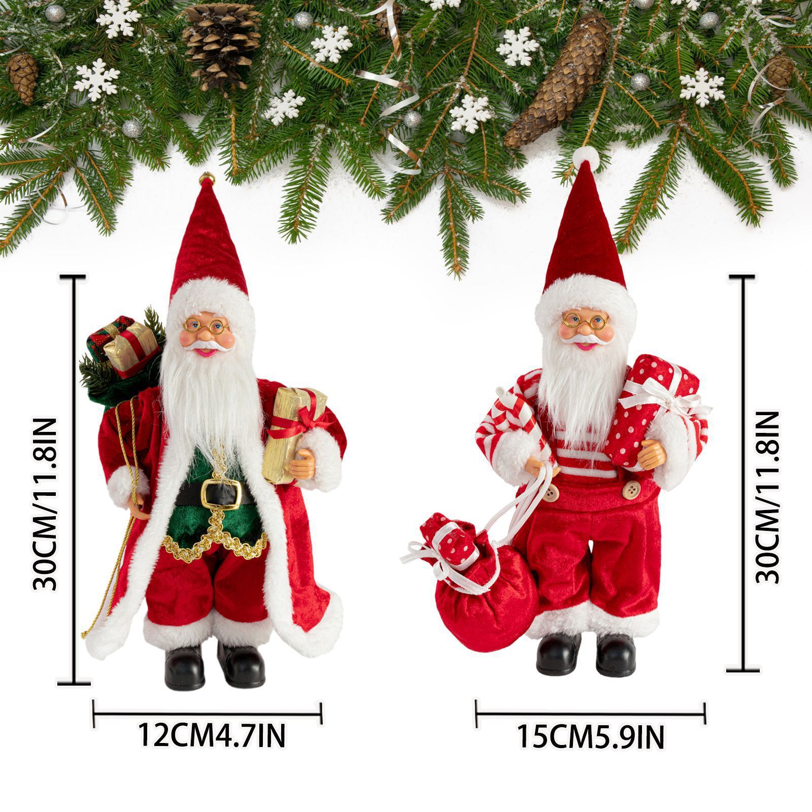 圣诞节12英寸圣诞老人公仔站姿圣诞老人玩偶橱窗装饰用品礼物
