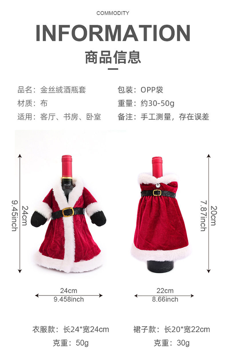 新品圣诞装饰品裙子礼服酒瓶套创意圣诞红酒套居家餐桌装饰