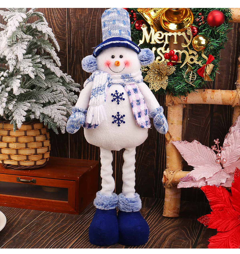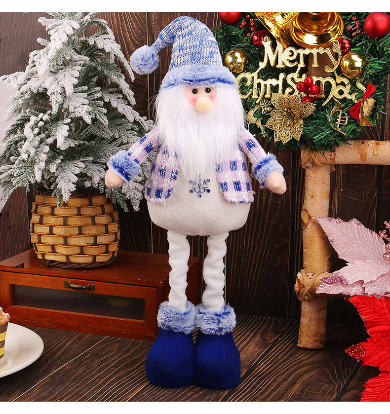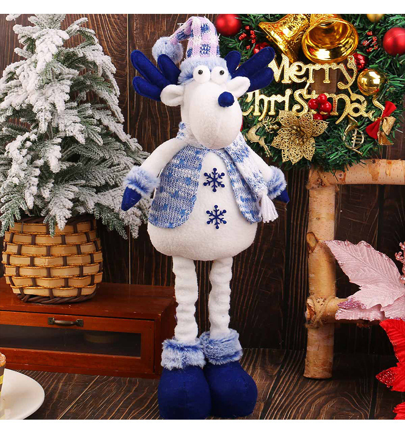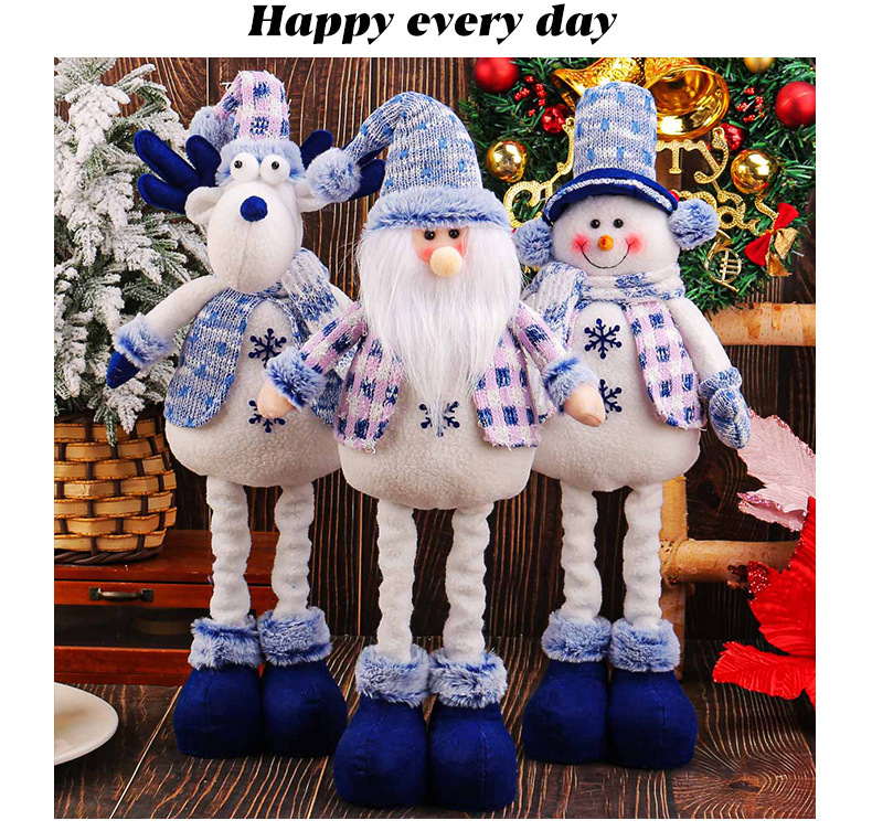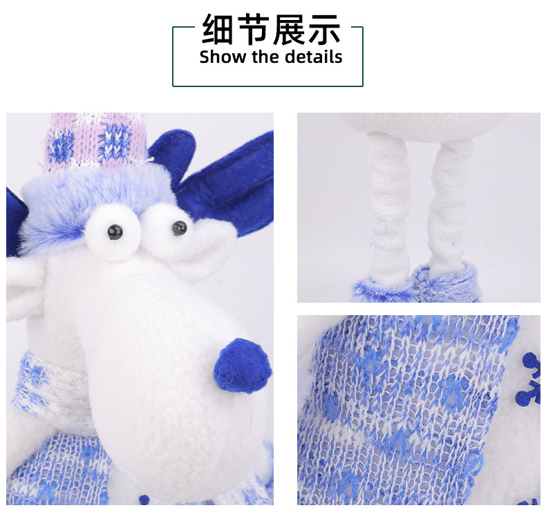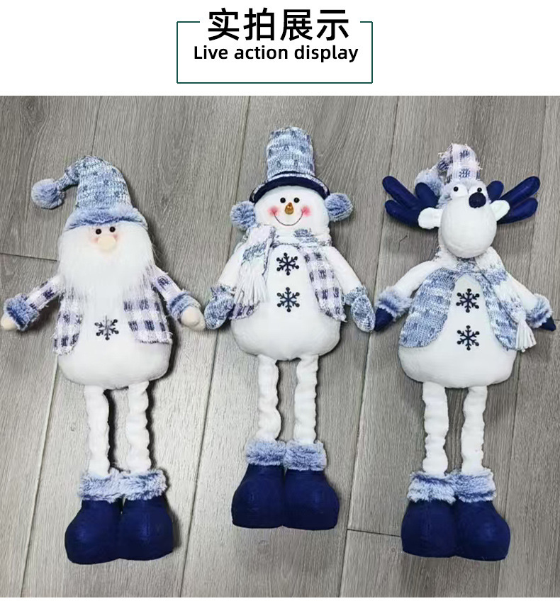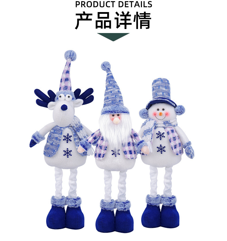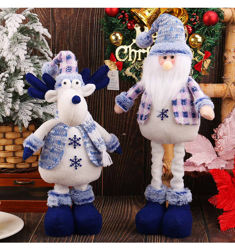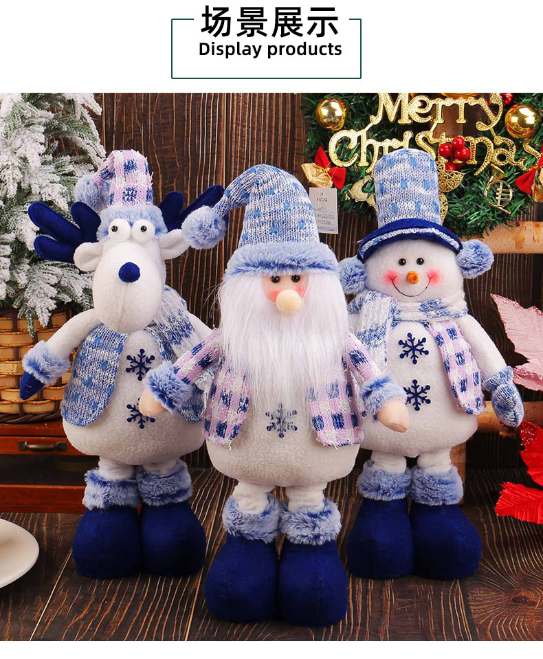 港之恋蓝色圣诞老人麋鹿圣诞树雪人装饰品创意可伸缩毛绒公仔挂件