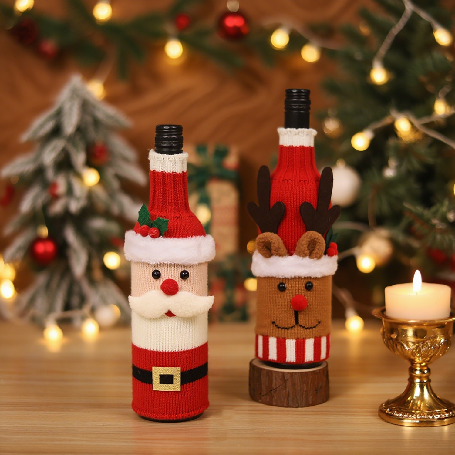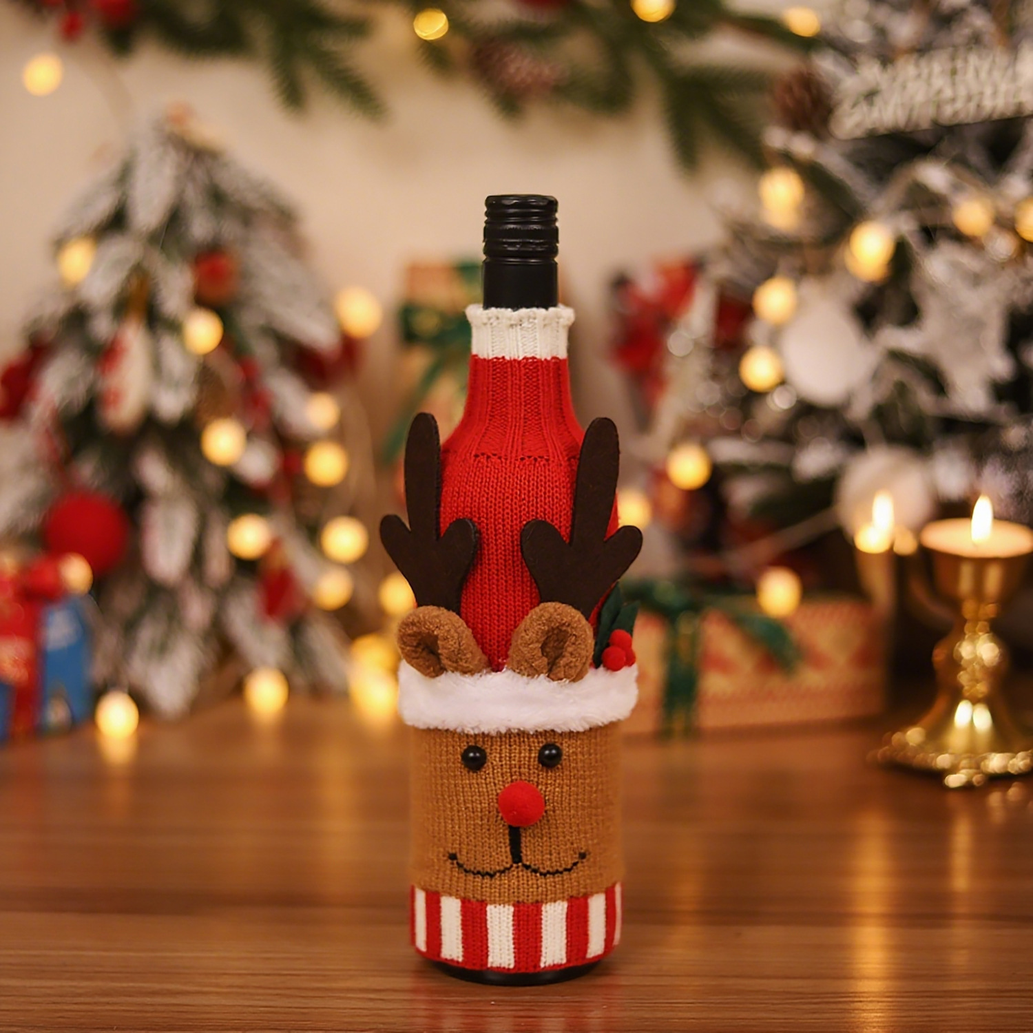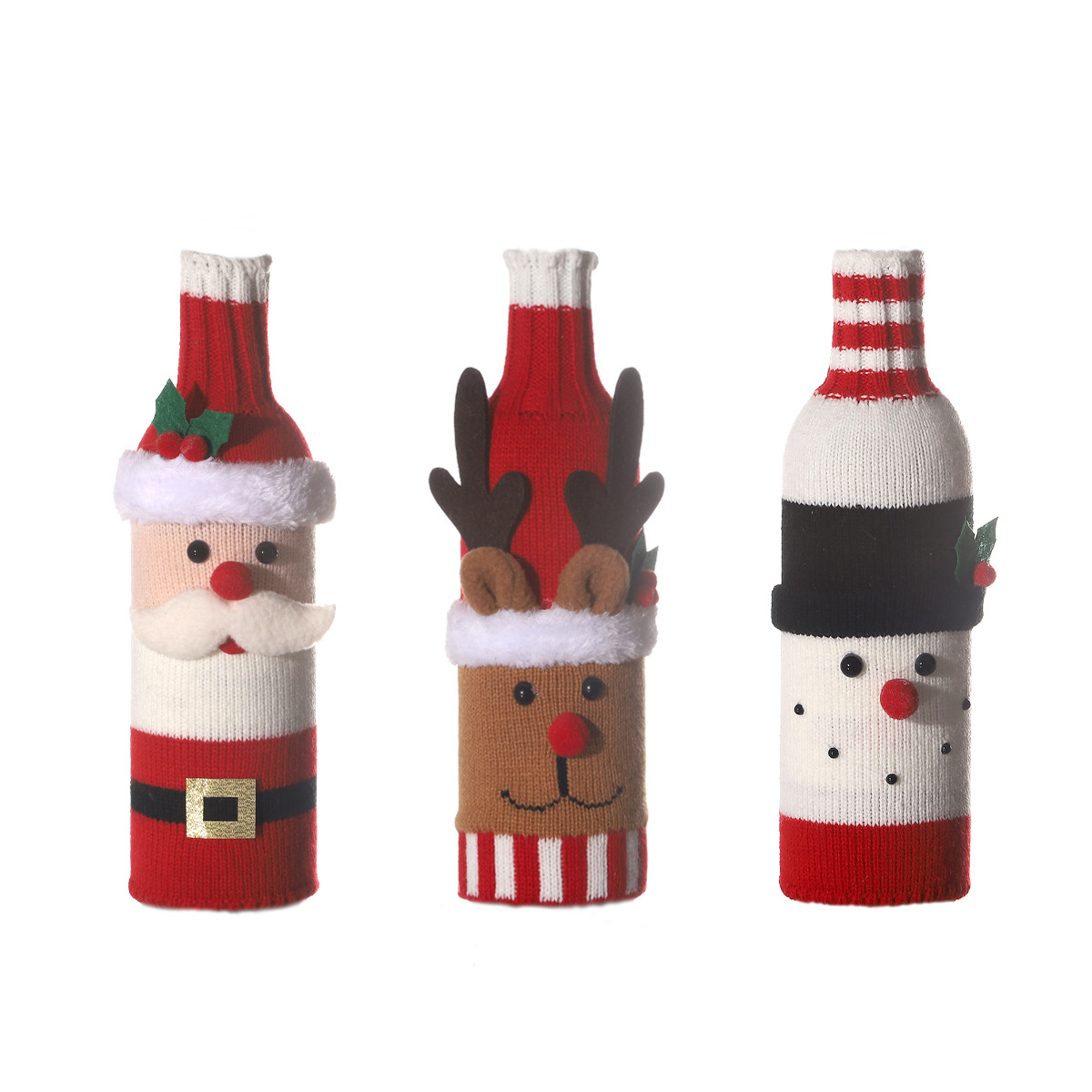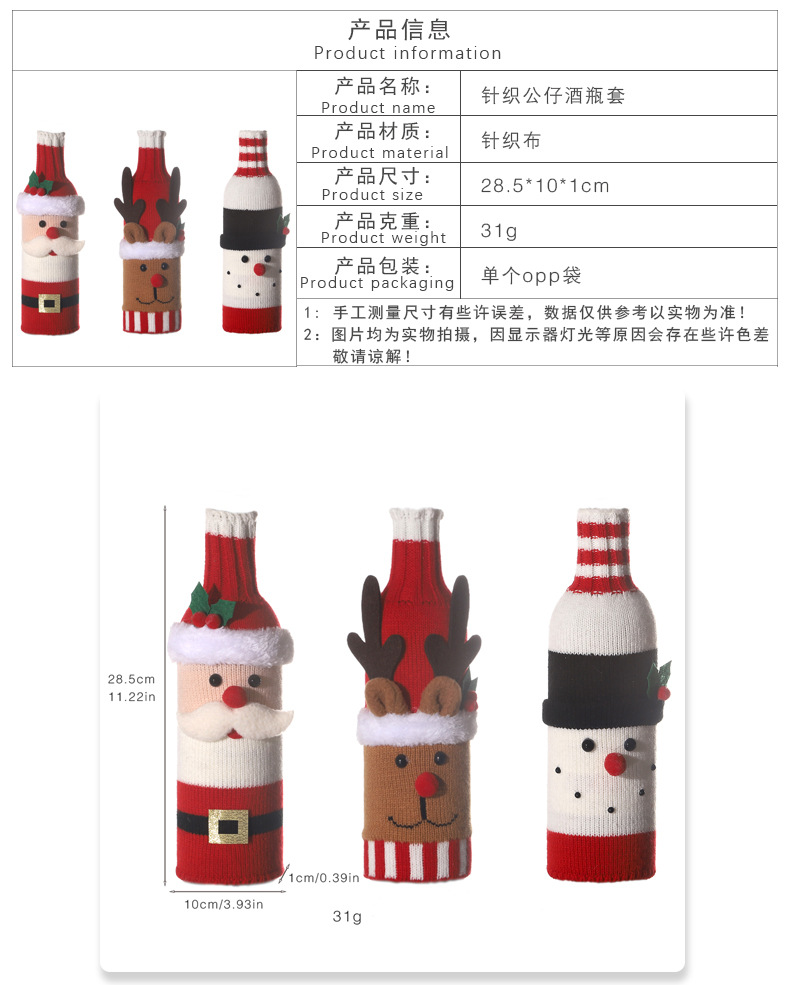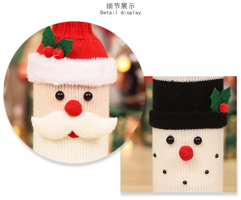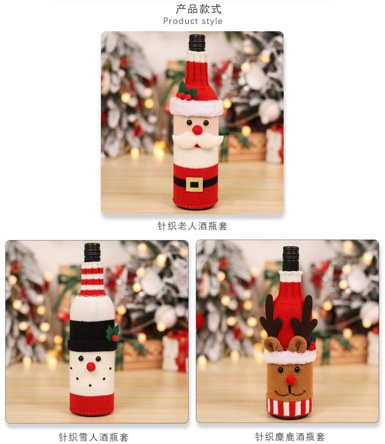 新品圣诞节装饰品针织布老人雪人麋鹿卡通酒瓶套家居餐桌装扮