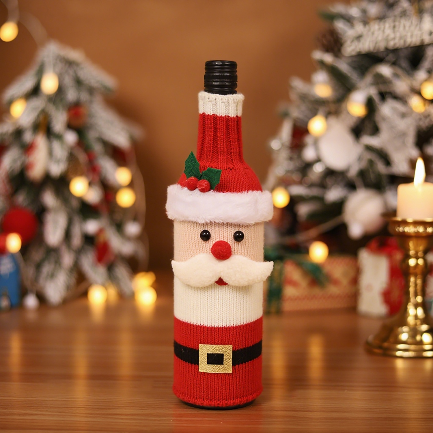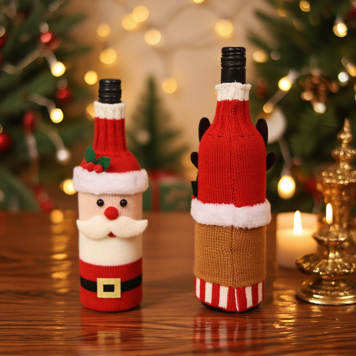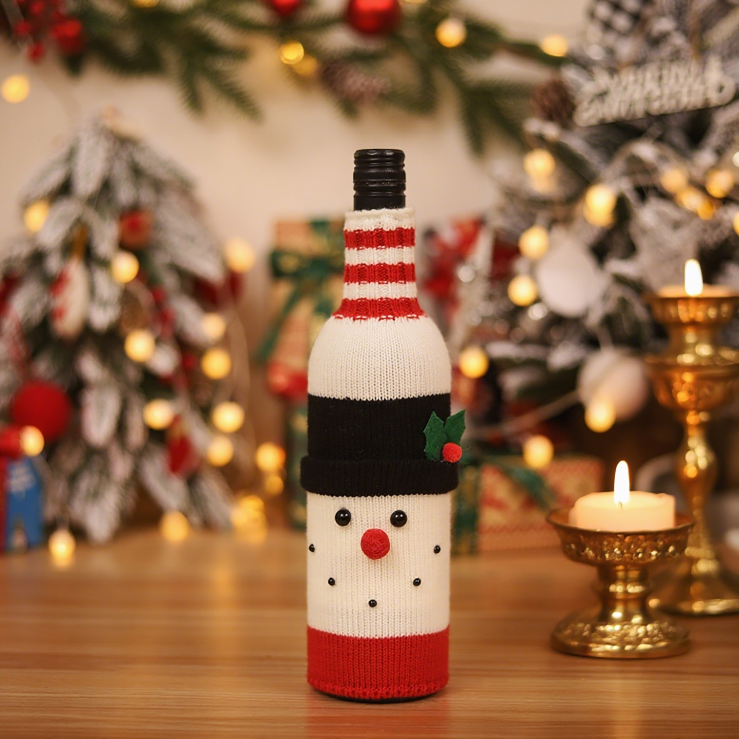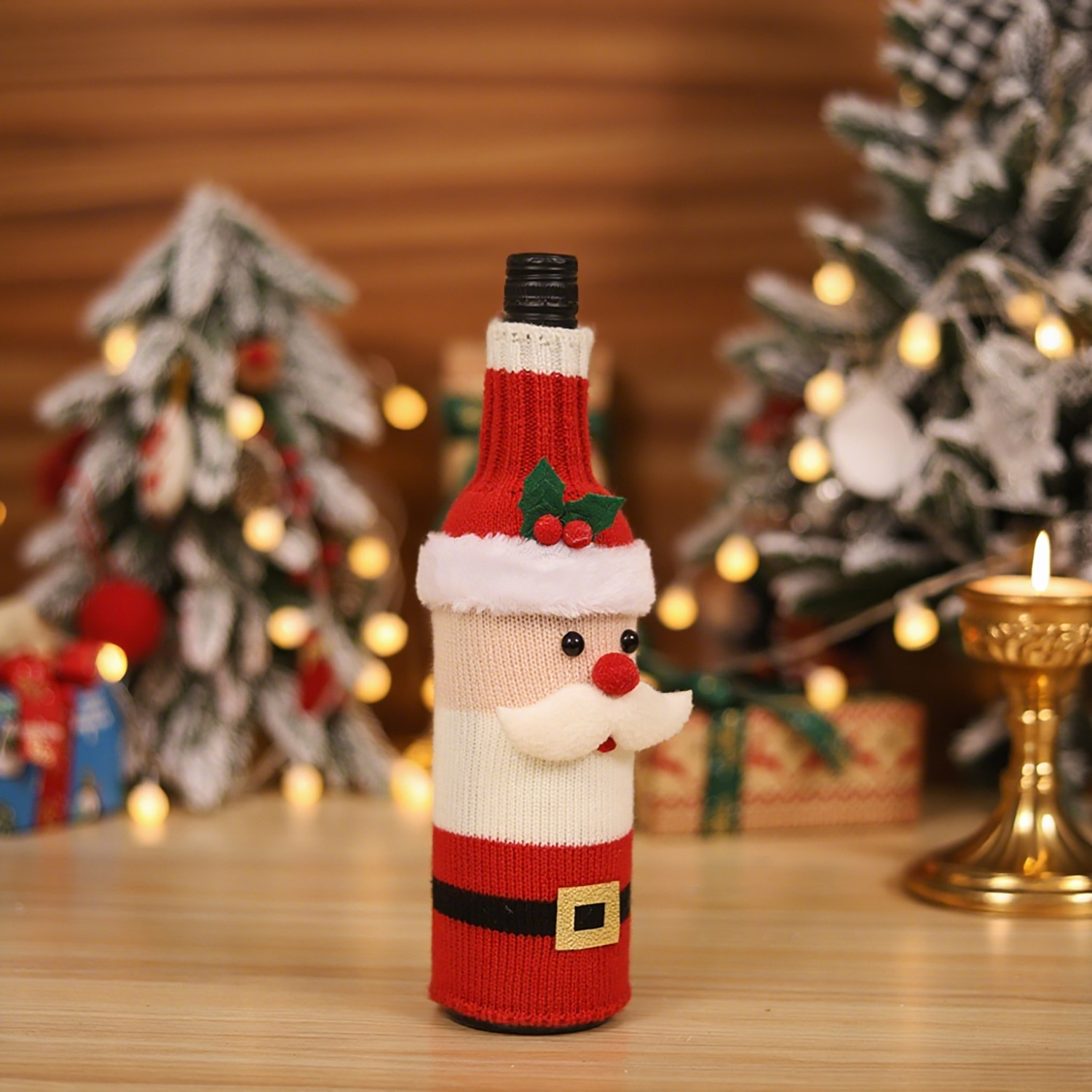 新品圣诞节装饰品针织布老人雪人麋鹿卡通酒瓶套家居餐桌装扮