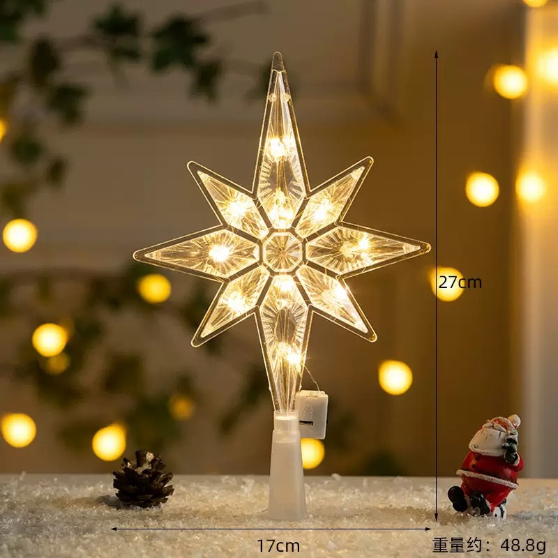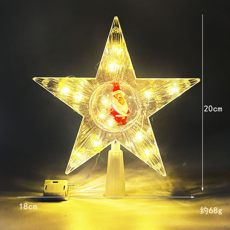 圣诞新款带灯树顶星圣诞透明发光五角星圣诞树装饰用品