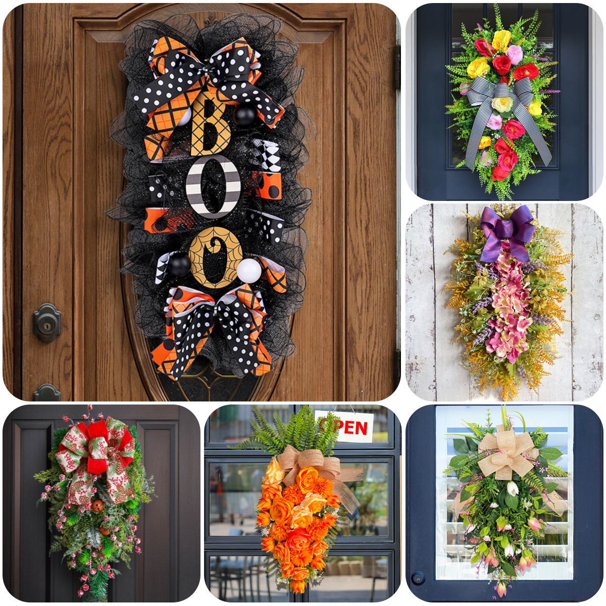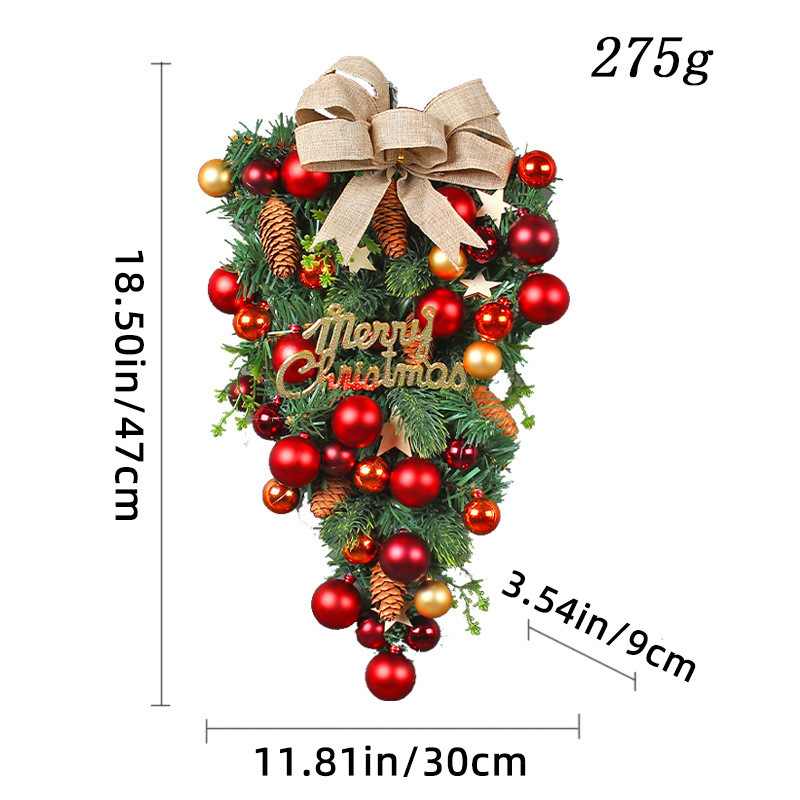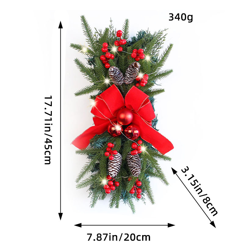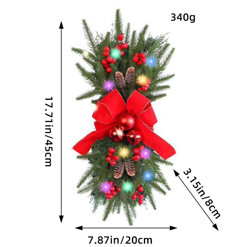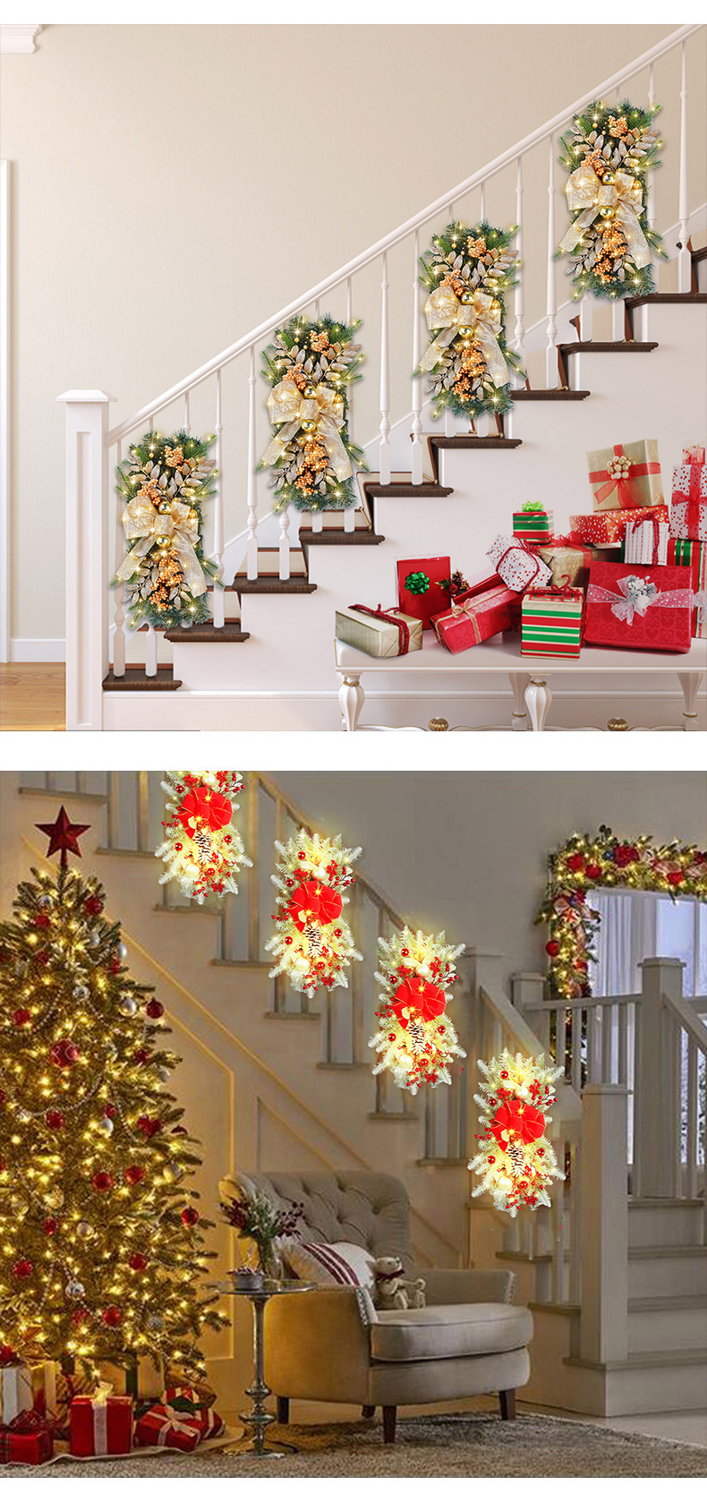 圣诞节装饰品圣诞花环藤条门帘挂件家居led发光楼梯倒挂装饰门挂