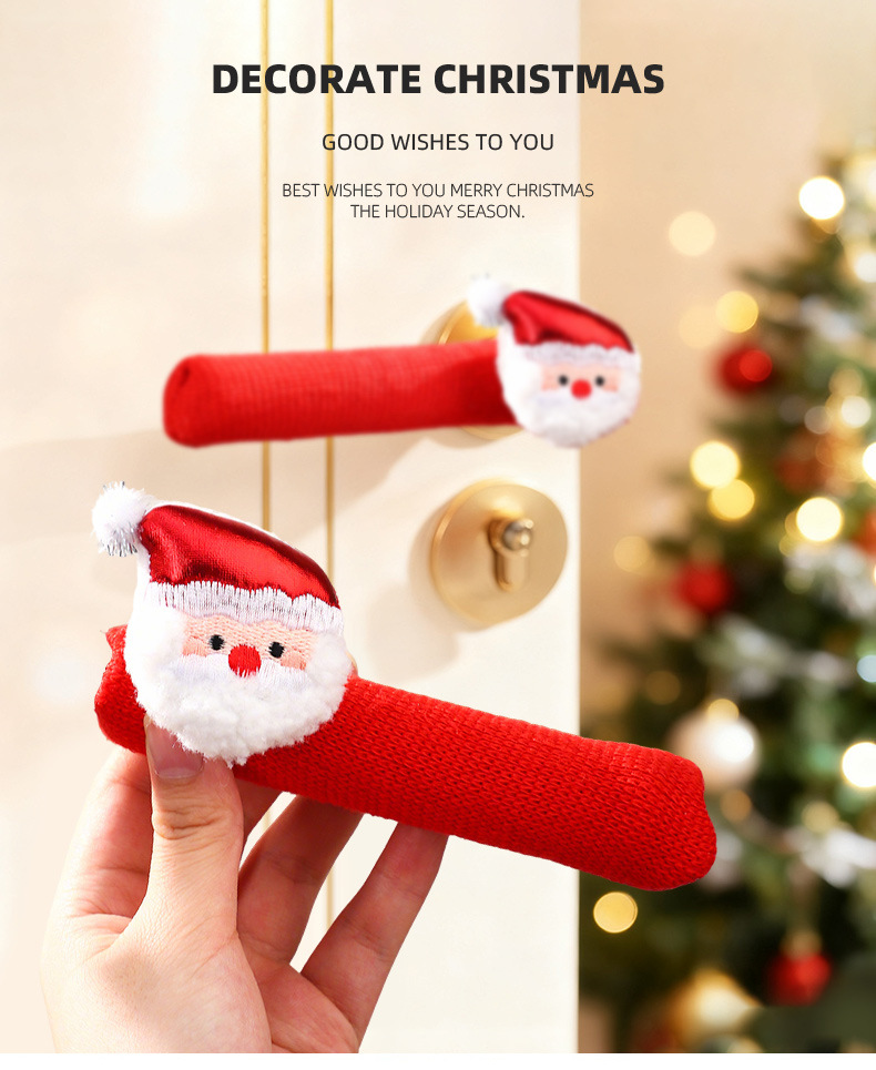 圣诞款可爱毛绒挂件少女圣诞节装饰小公仔入户门把手套饰品