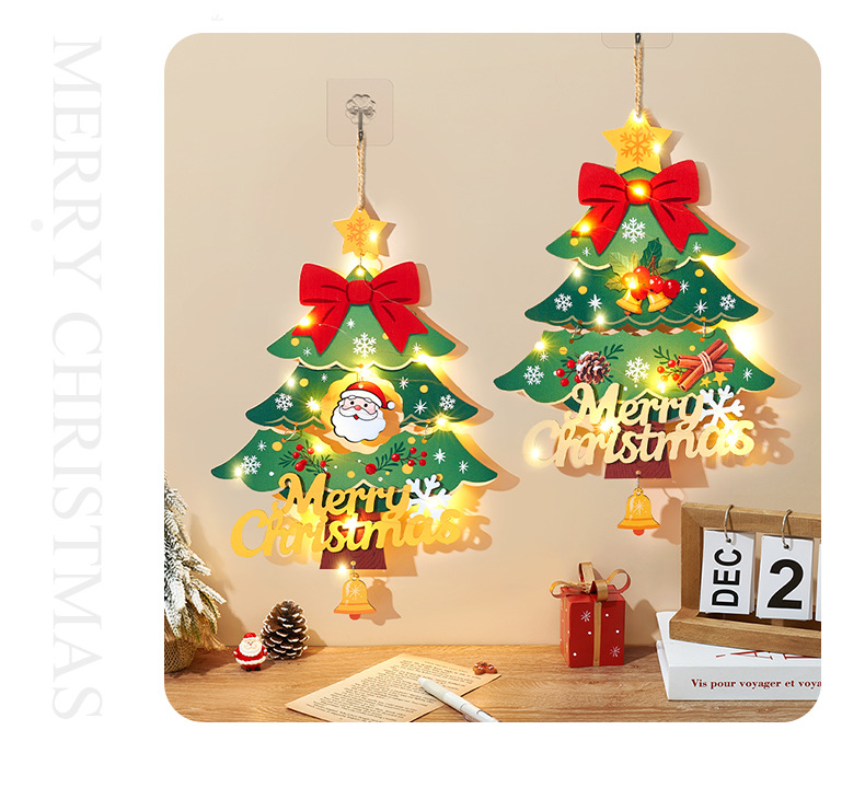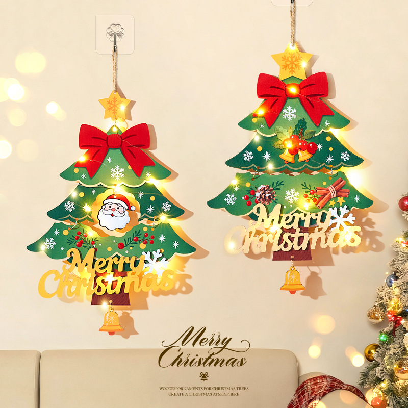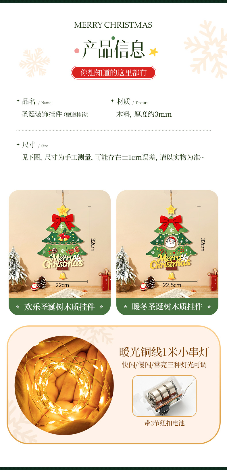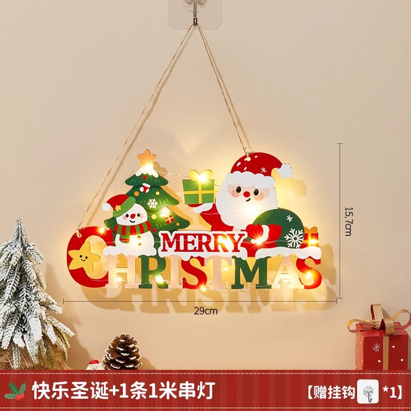 快乐圣诞木质挂件-带灯串款【赠挂钩*1】
