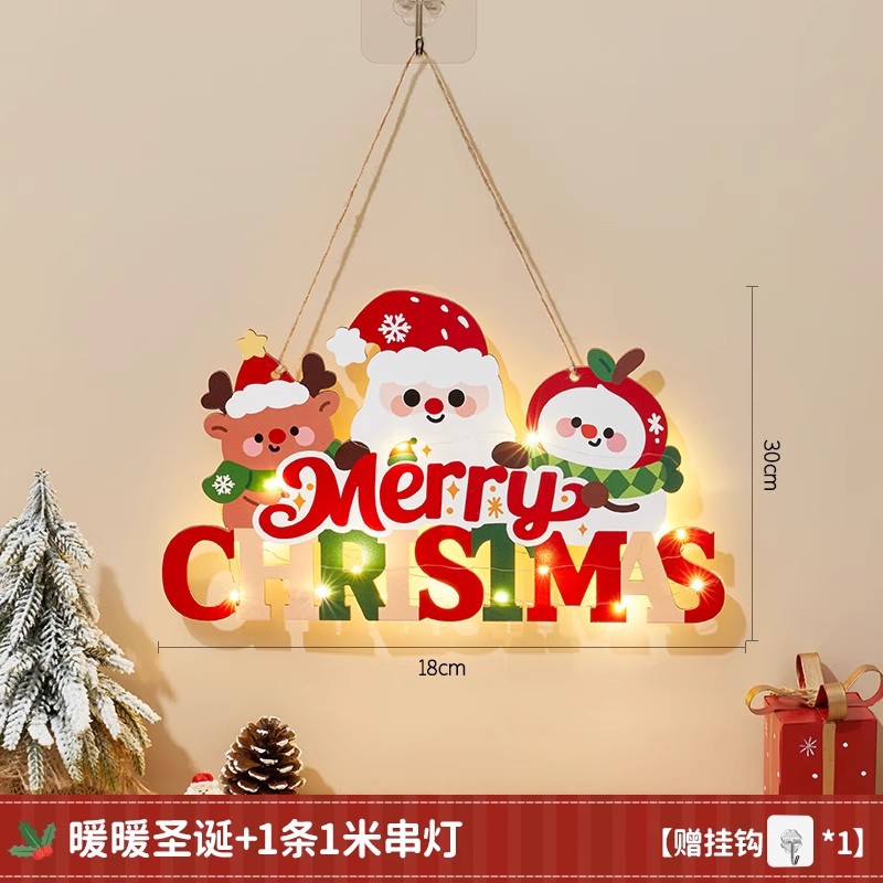 暖暖圣诞木质挂件-带灯串款【赠挂钩*1】
