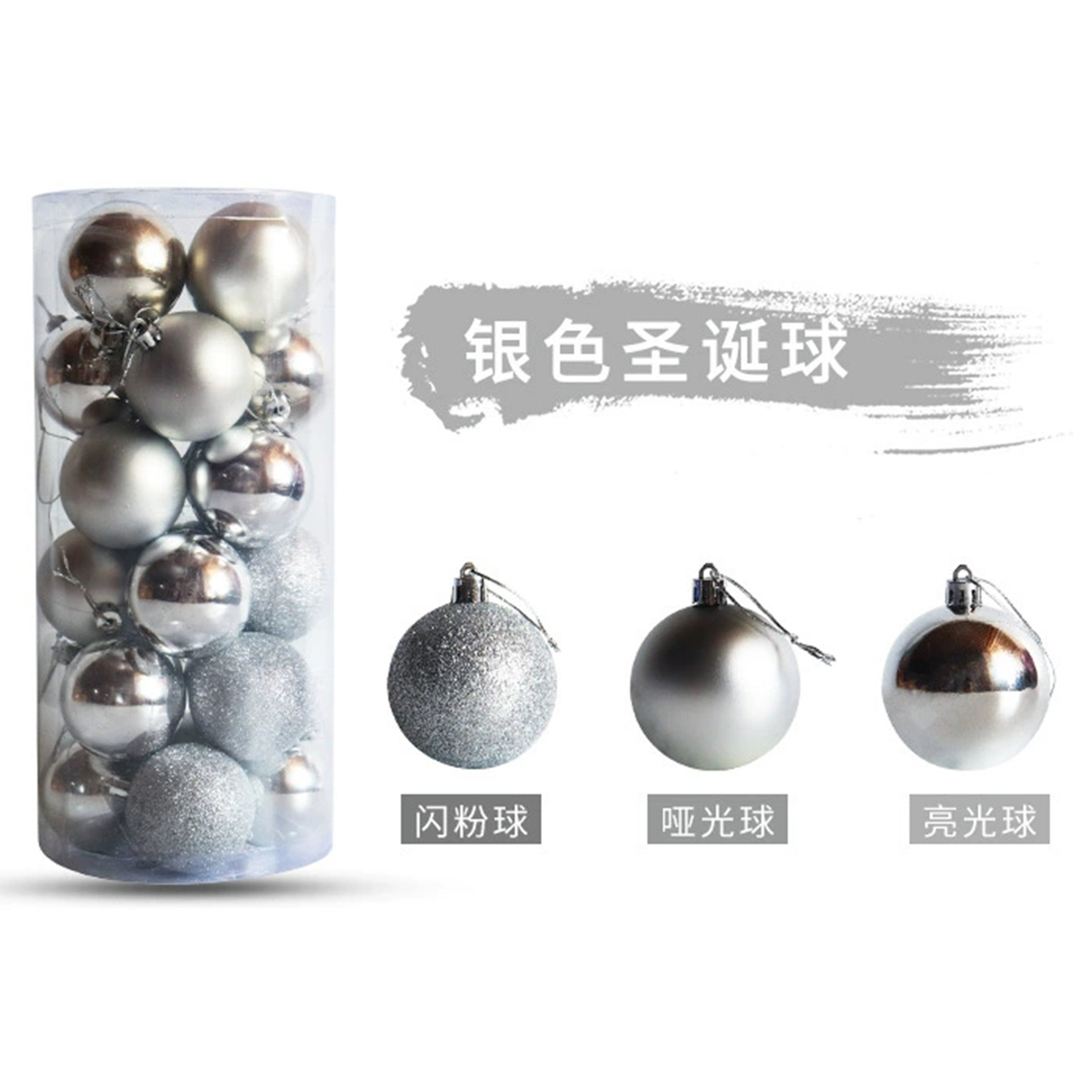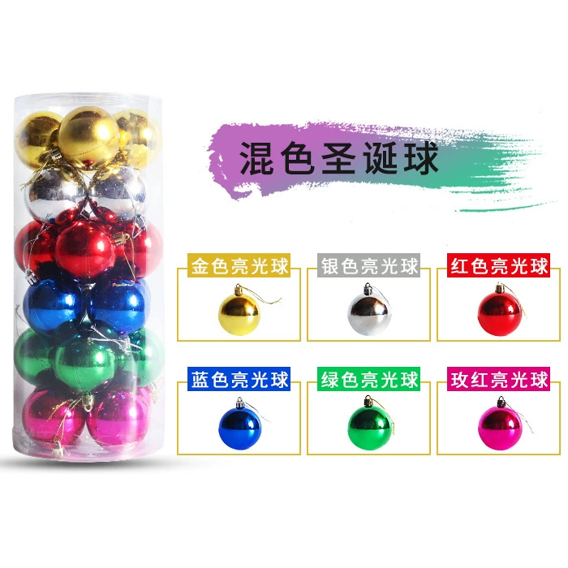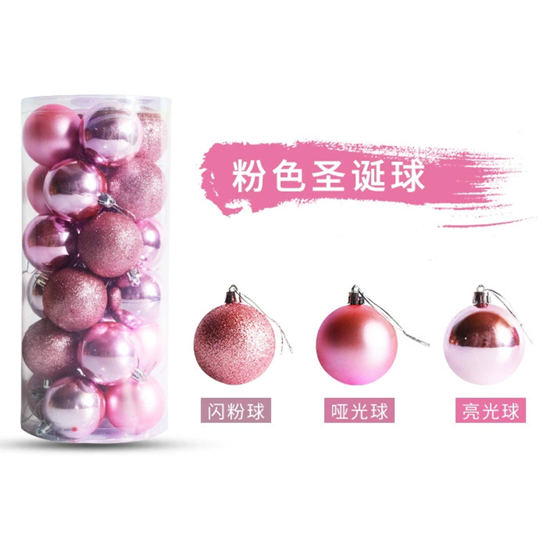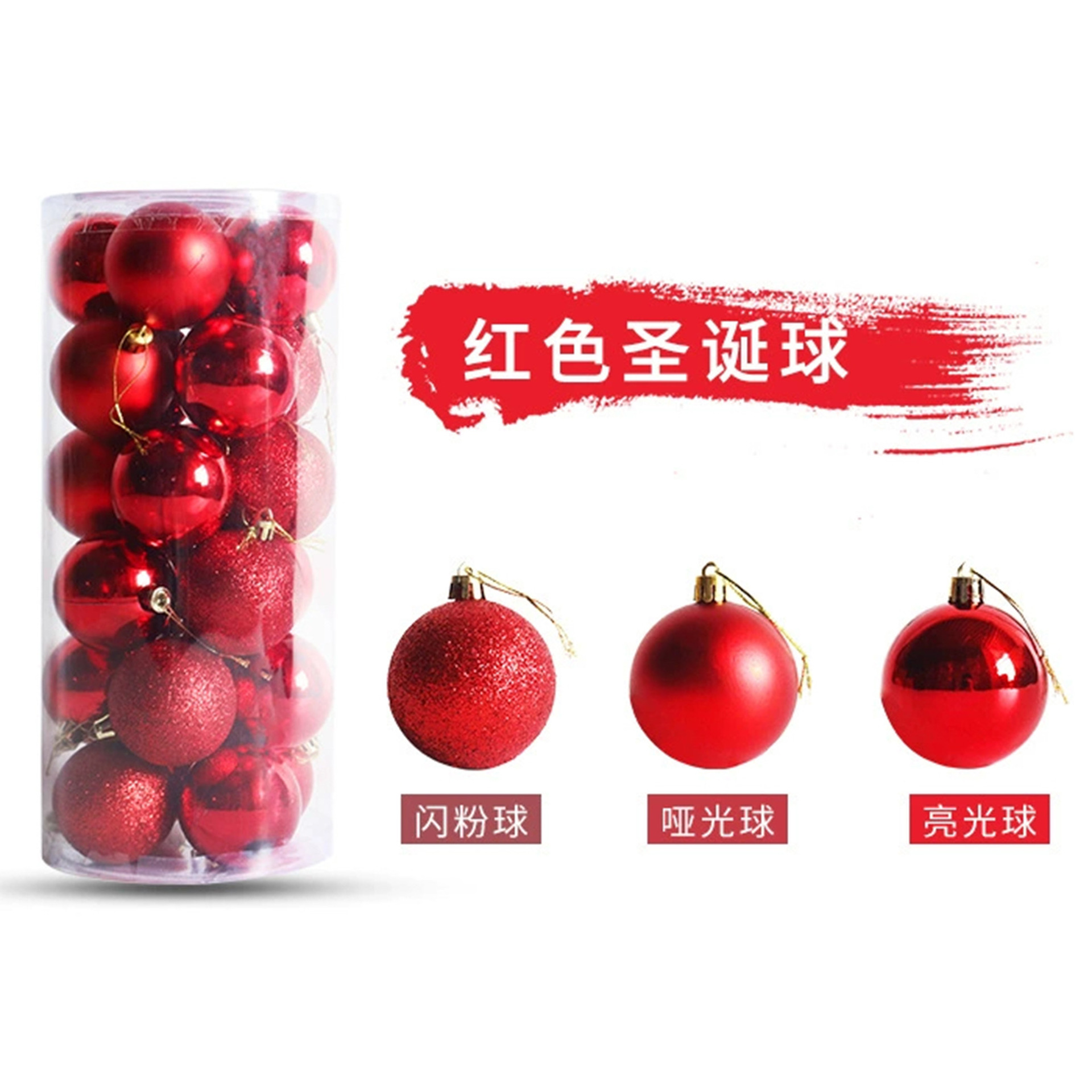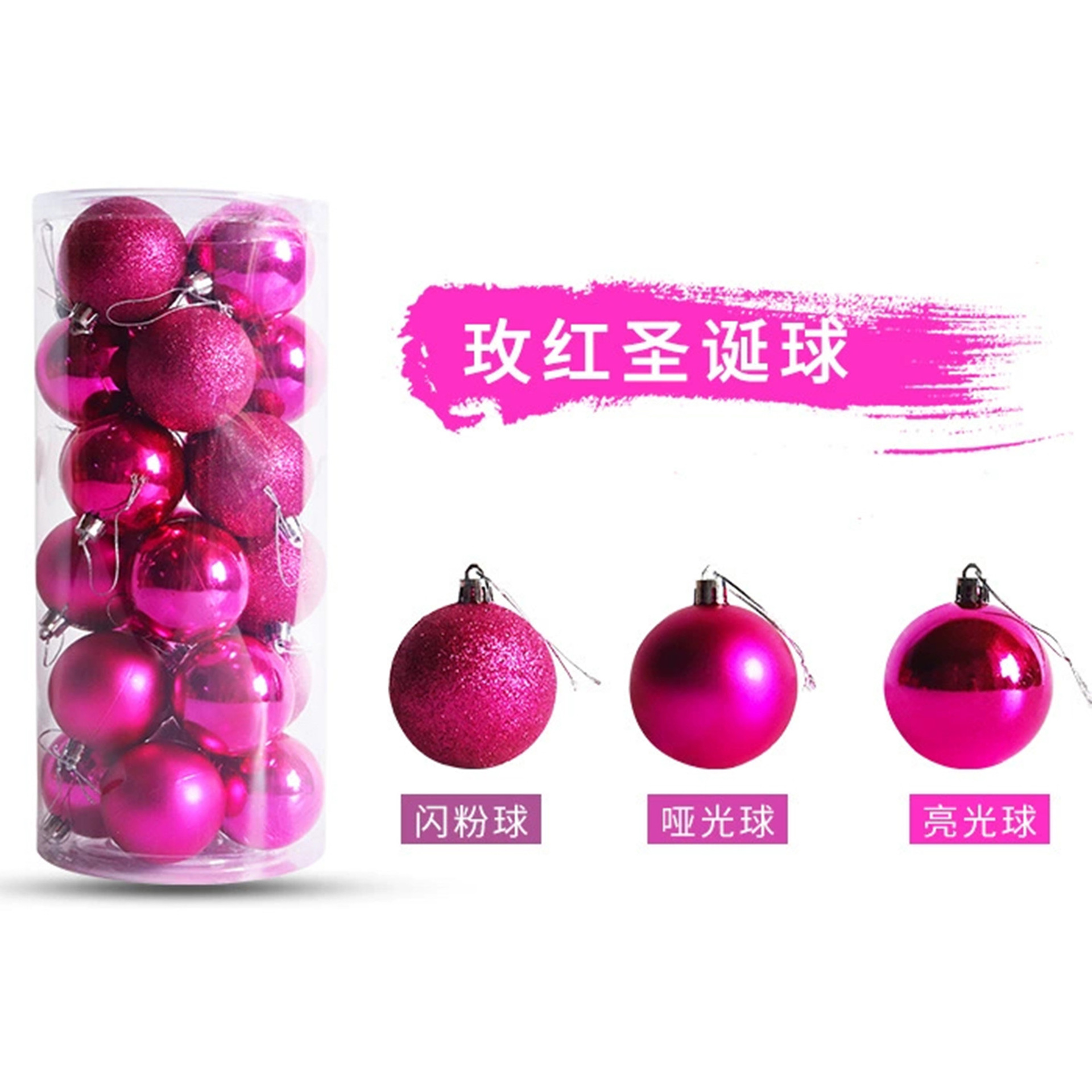 圣诞节装饰品3/4/5/6/8cm桶装电镀塑料圣诞球套装圣诞树装饰挂件