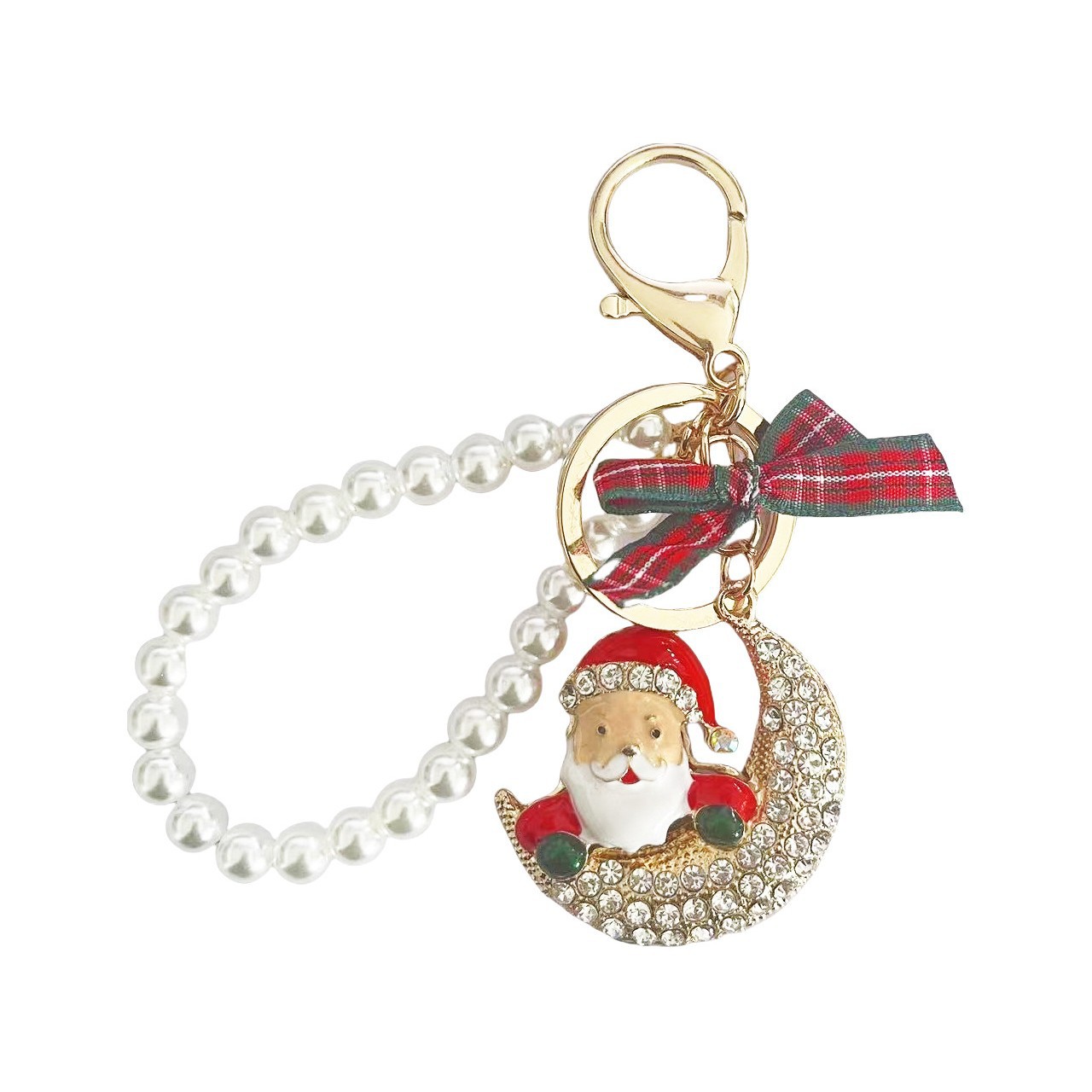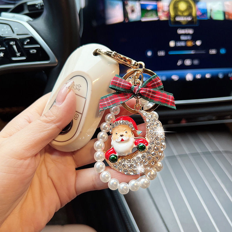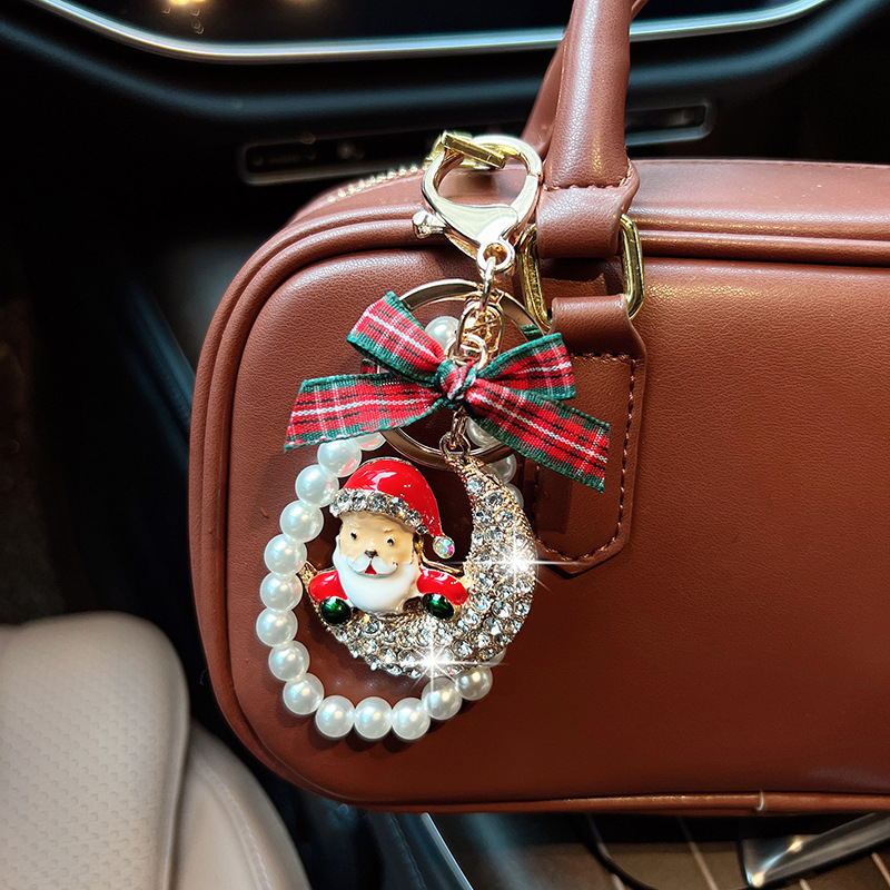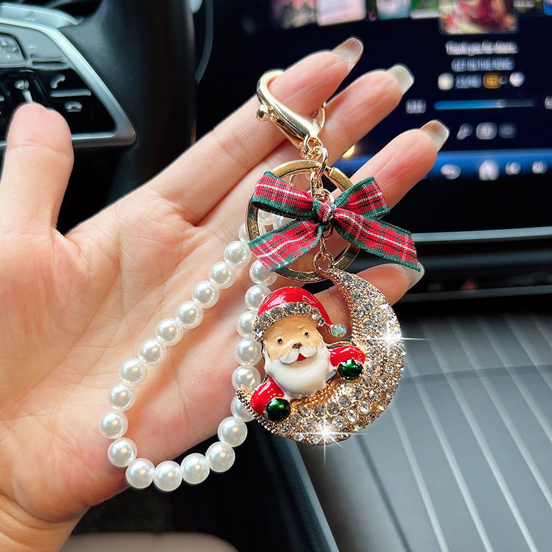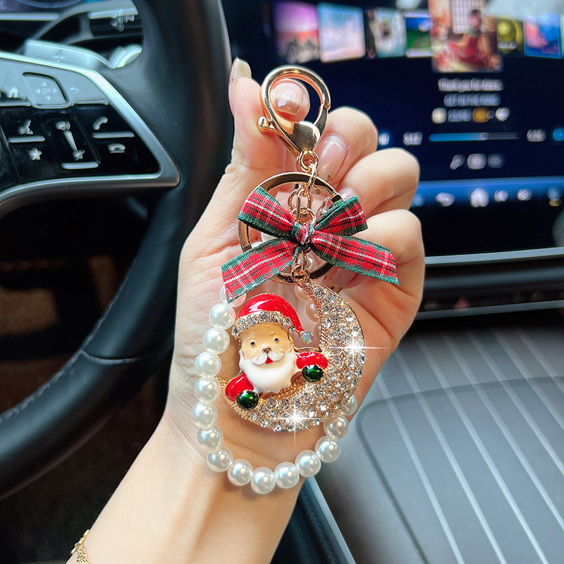 【圣诞节】新款合金镶钻月亮圣诞老人汽车钥匙扣时尚珠串节日包挂