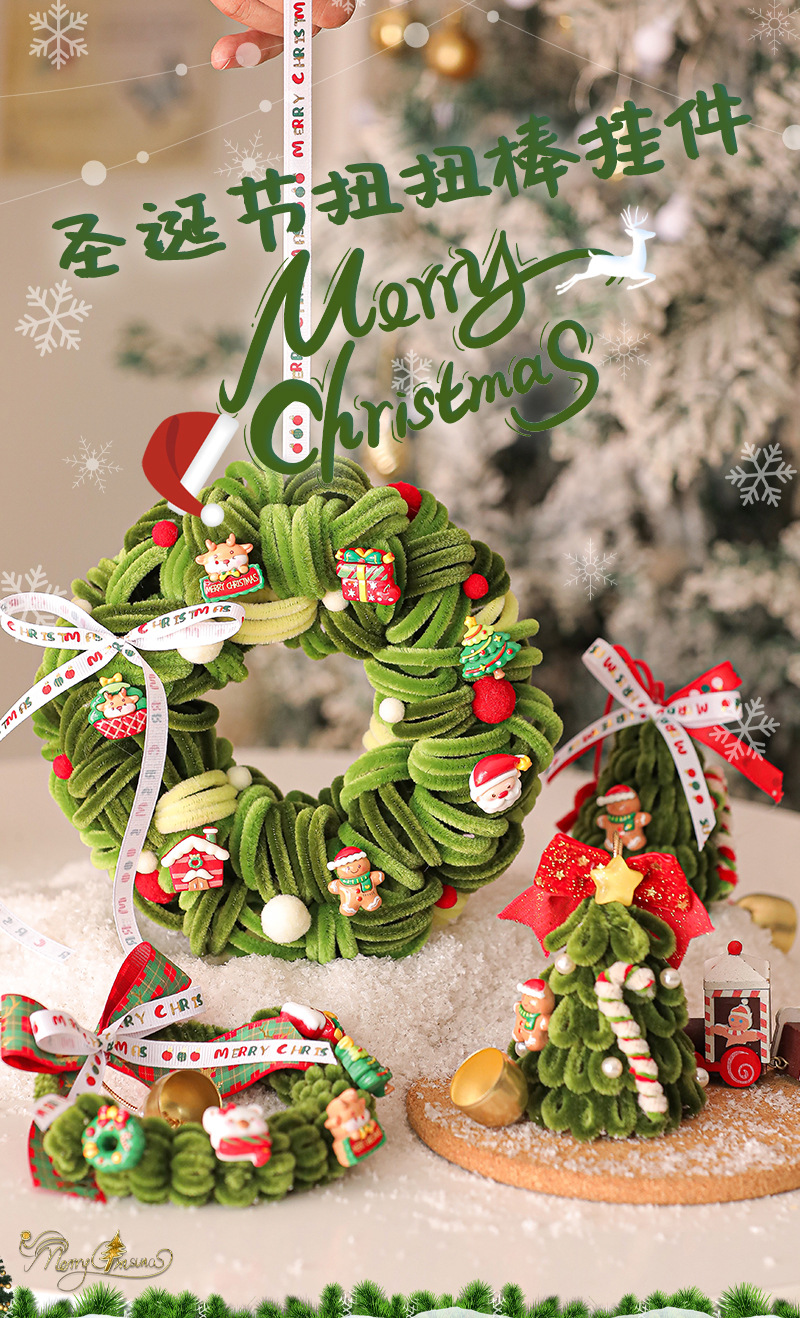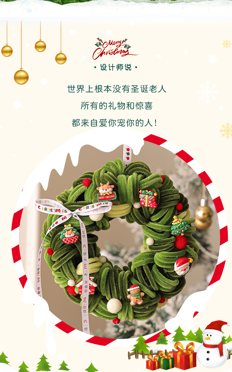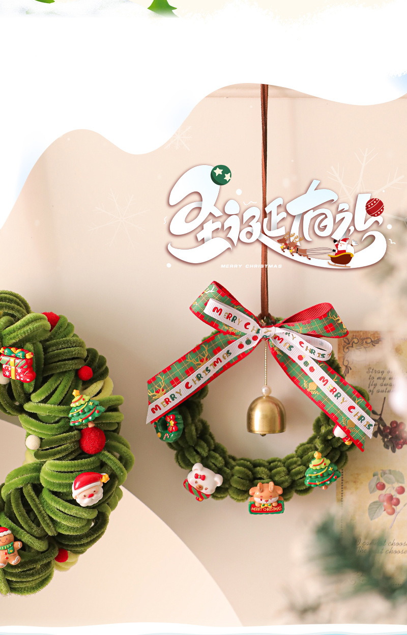 圣诞节装饰花环场景布置圣诞树装饰品藤圈挂件门挂2025新款扭扭棒