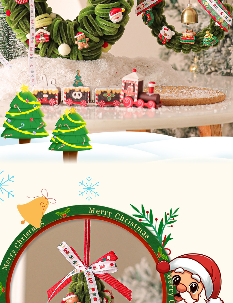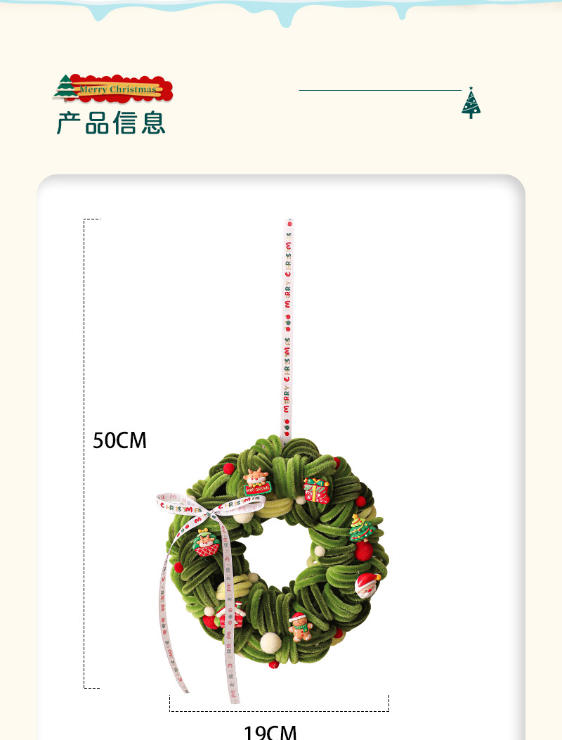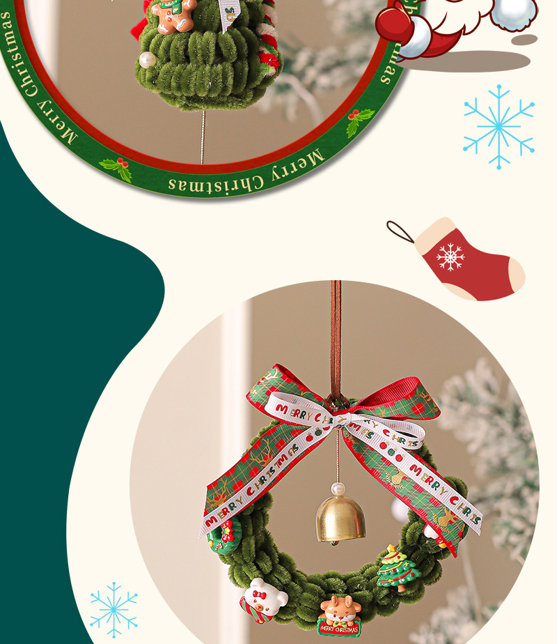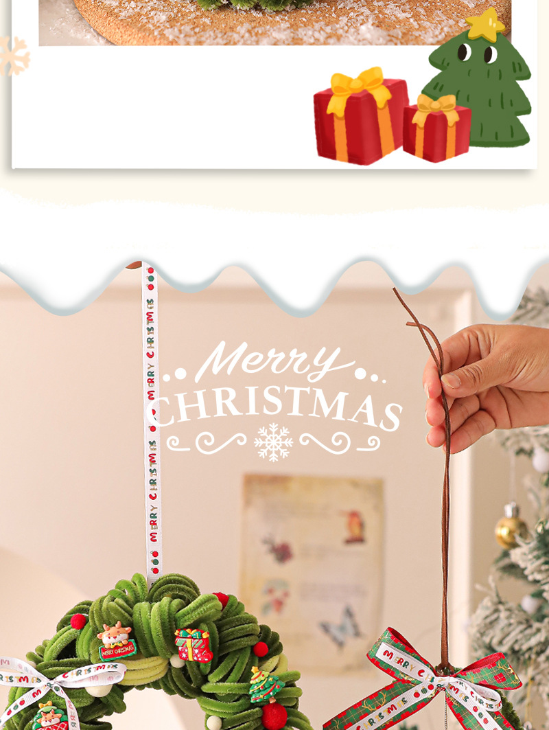 圣诞节装饰花环场景布置圣诞树装饰品藤圈挂件门挂2025新款扭扭棒