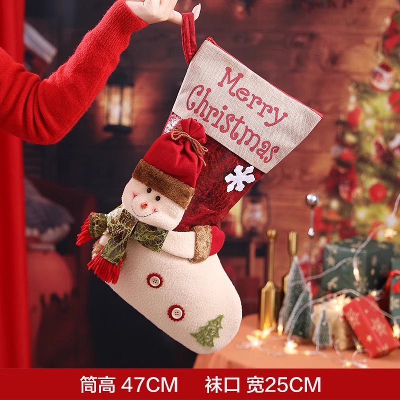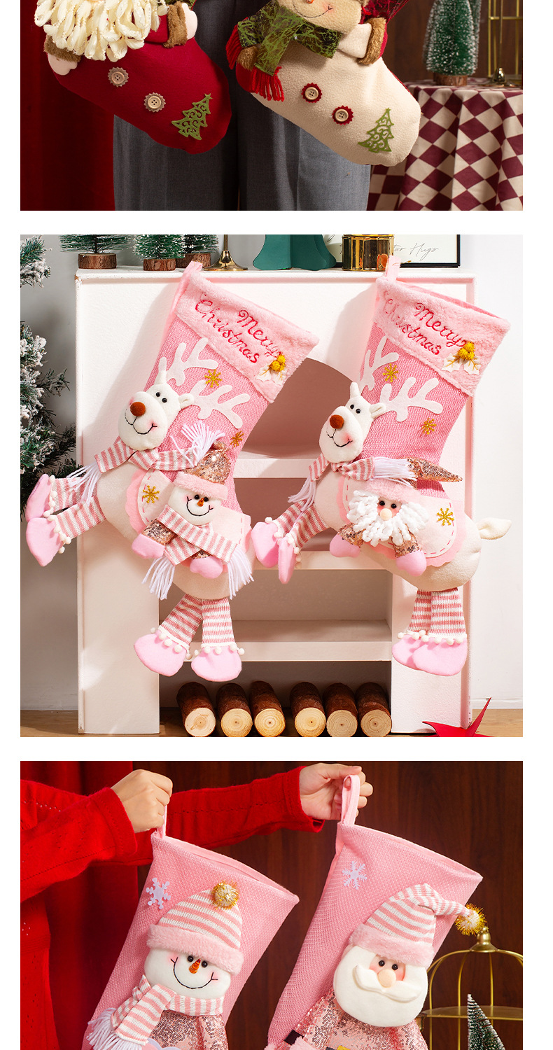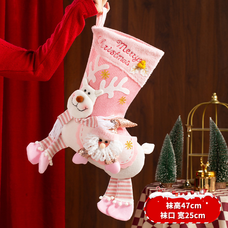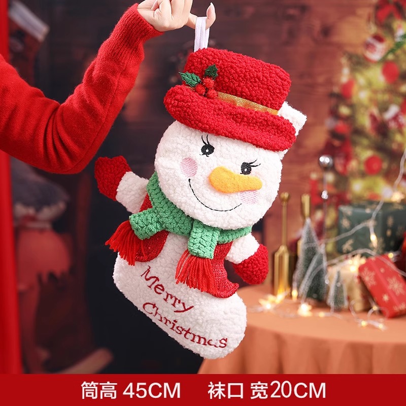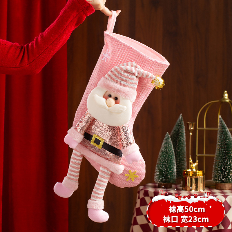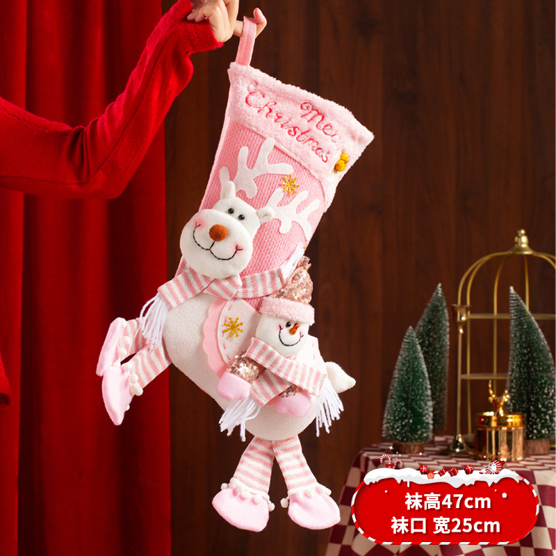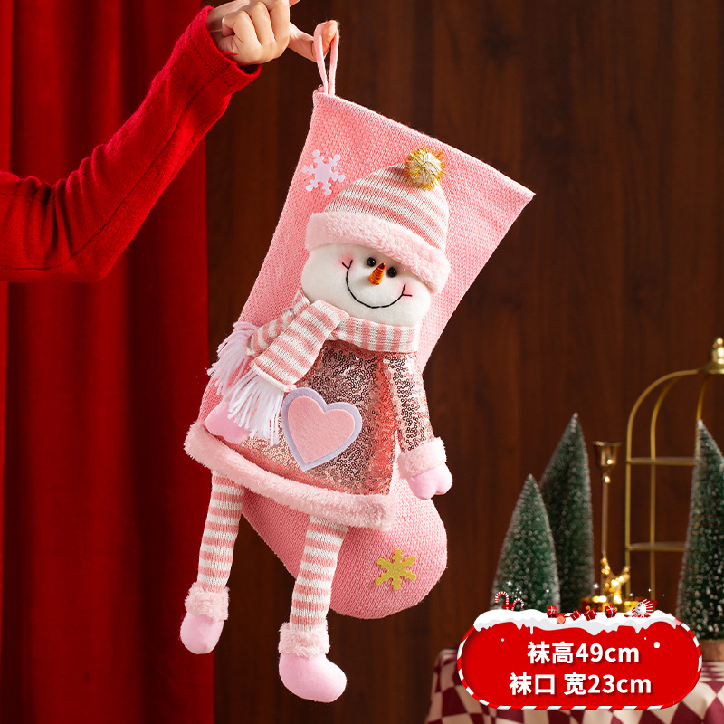 新款圣诞袜糖果袋圣诞节装饰品卡通粉色雪人手提袋节日挂件
