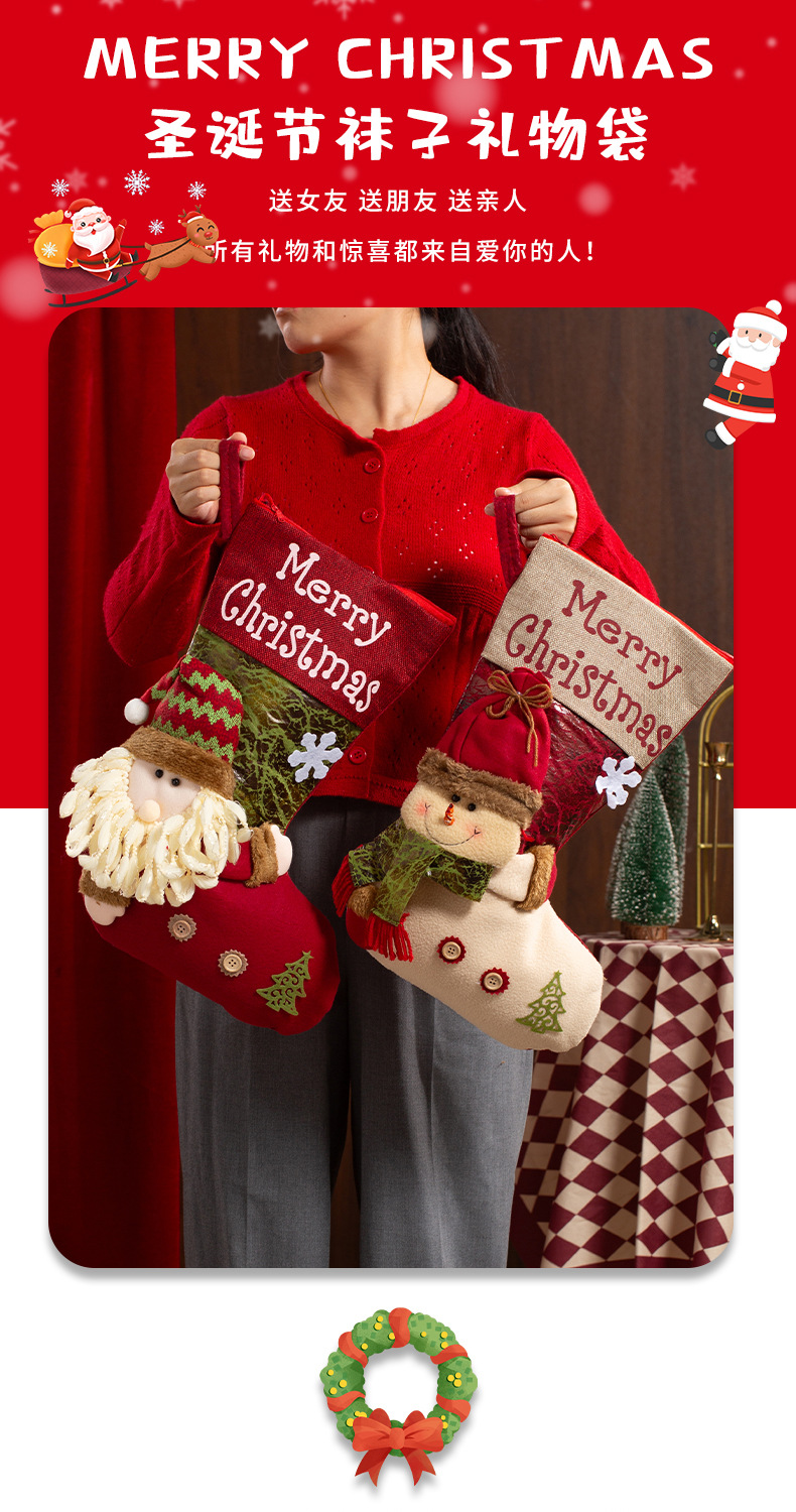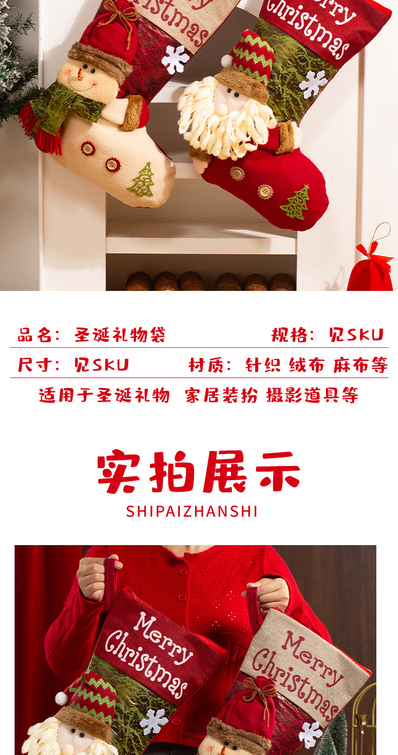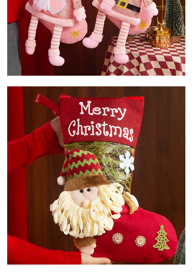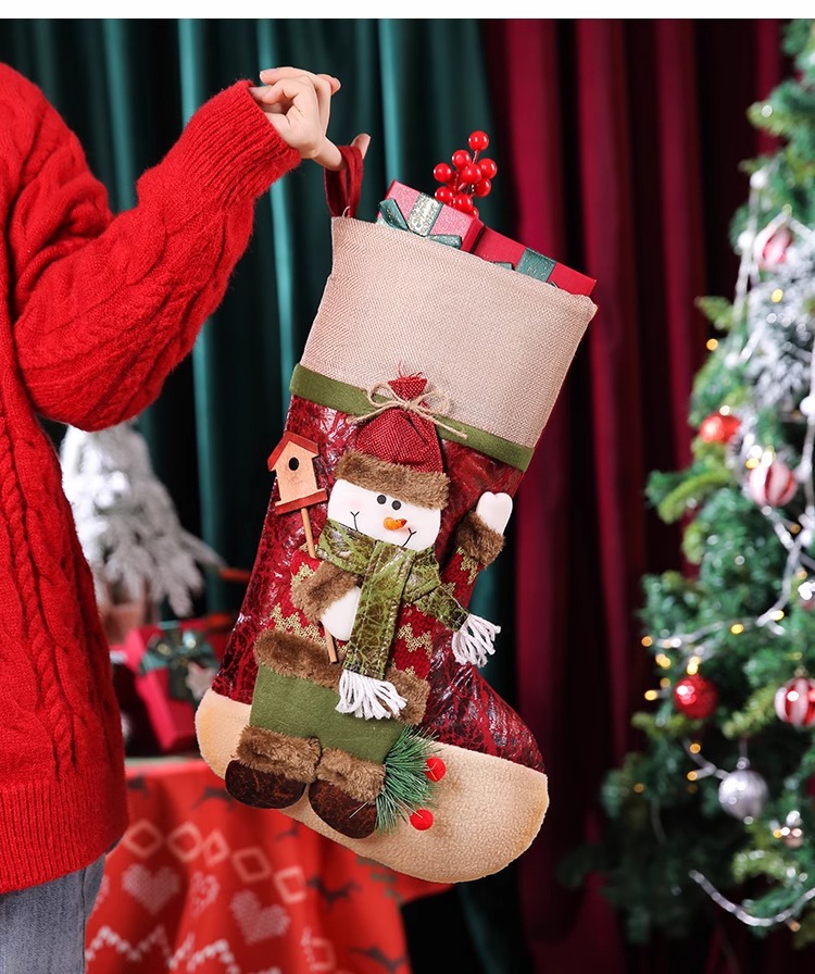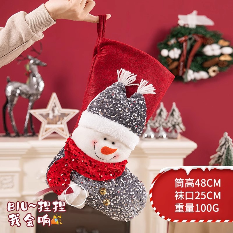 新款圣诞袜糖果袋圣诞节装饰品卡通粉色雪人手提袋节日挂件