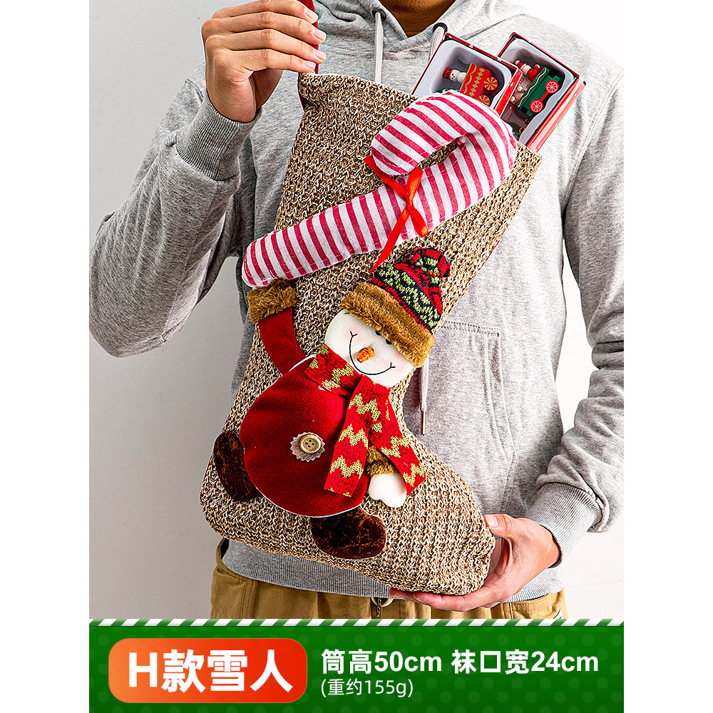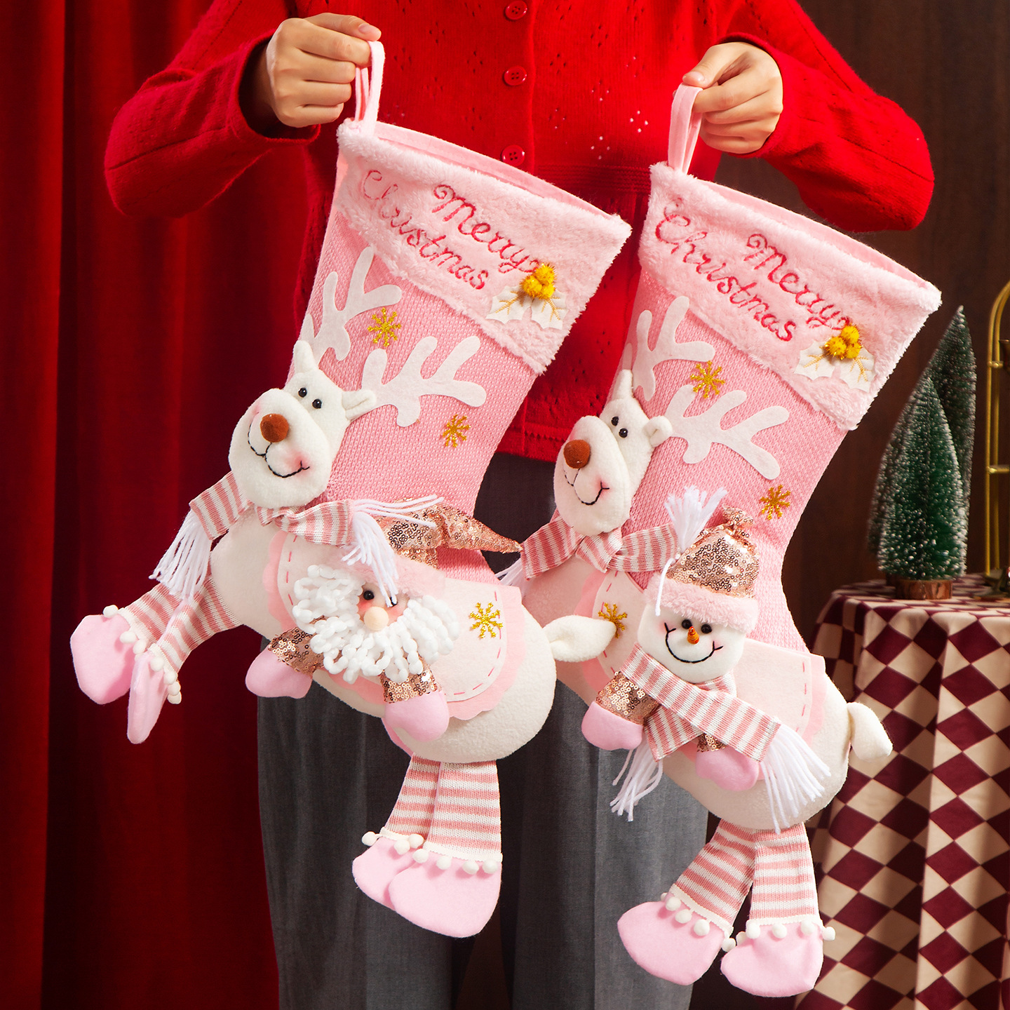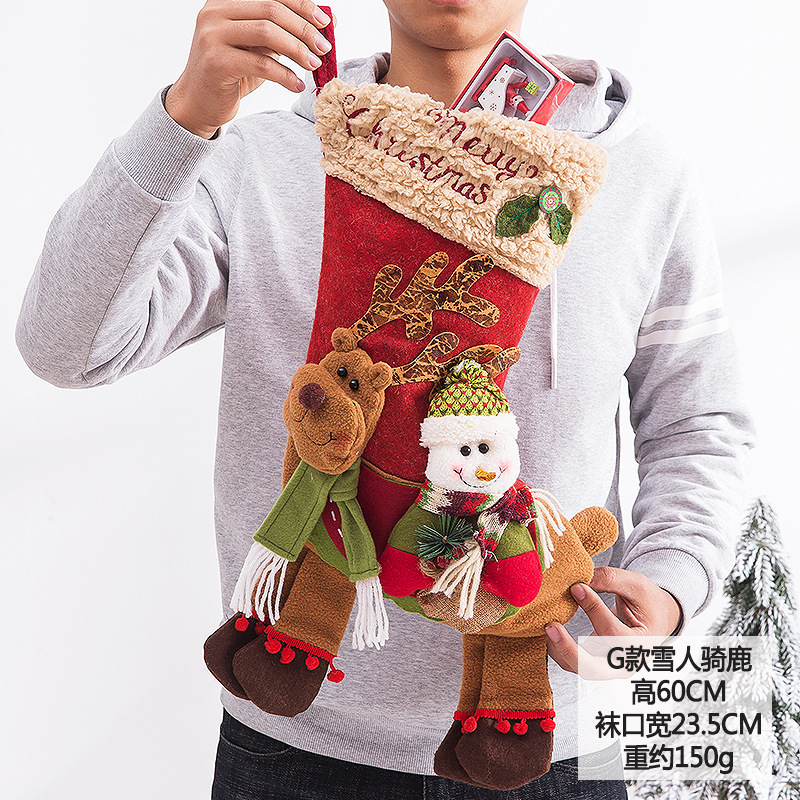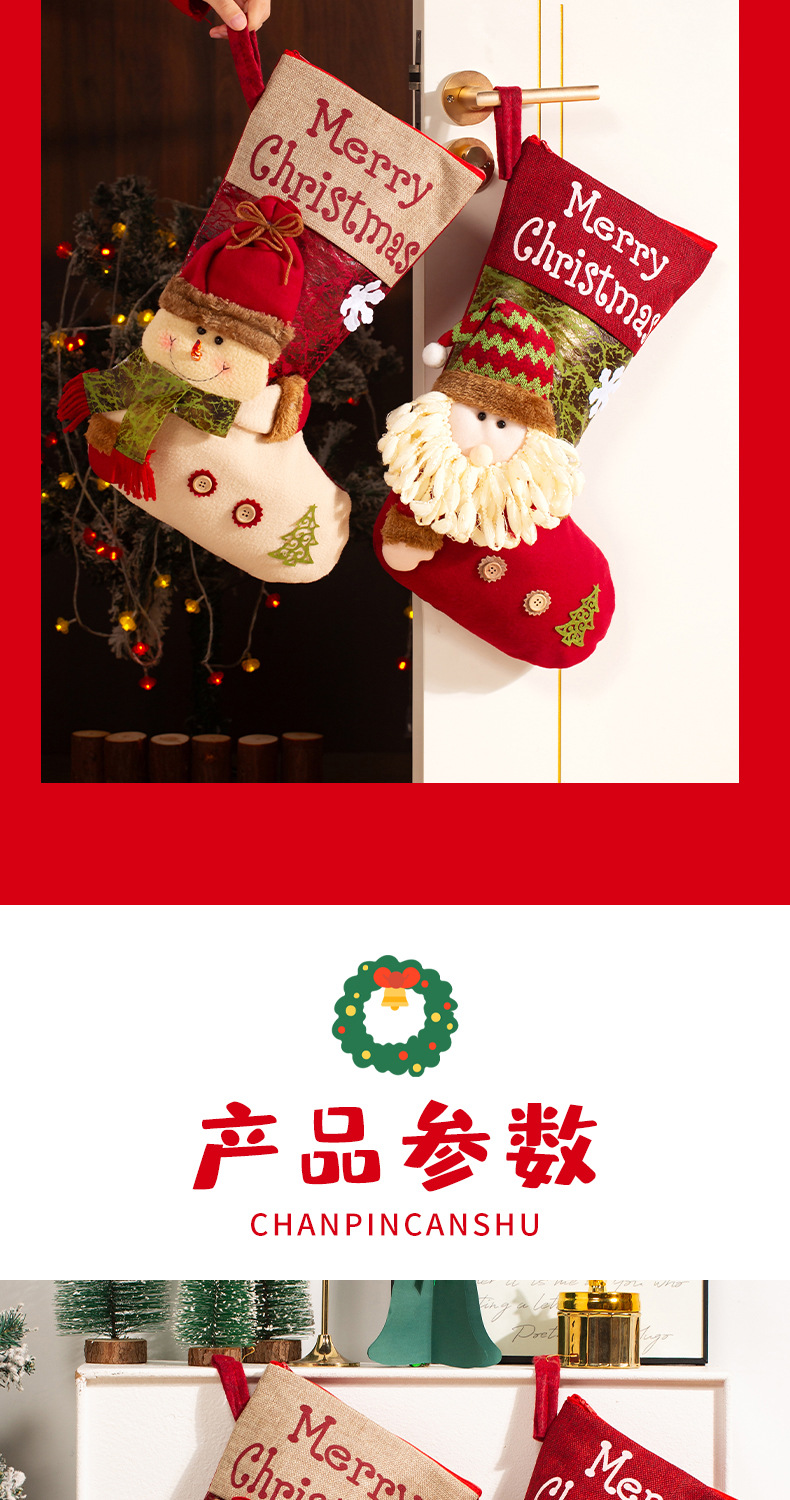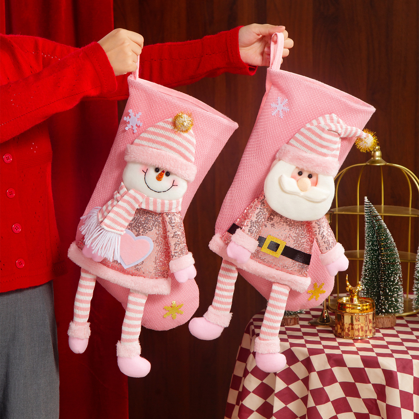 新款圣诞袜糖果袋圣诞节装饰品卡通粉色雪人手提袋节日挂件