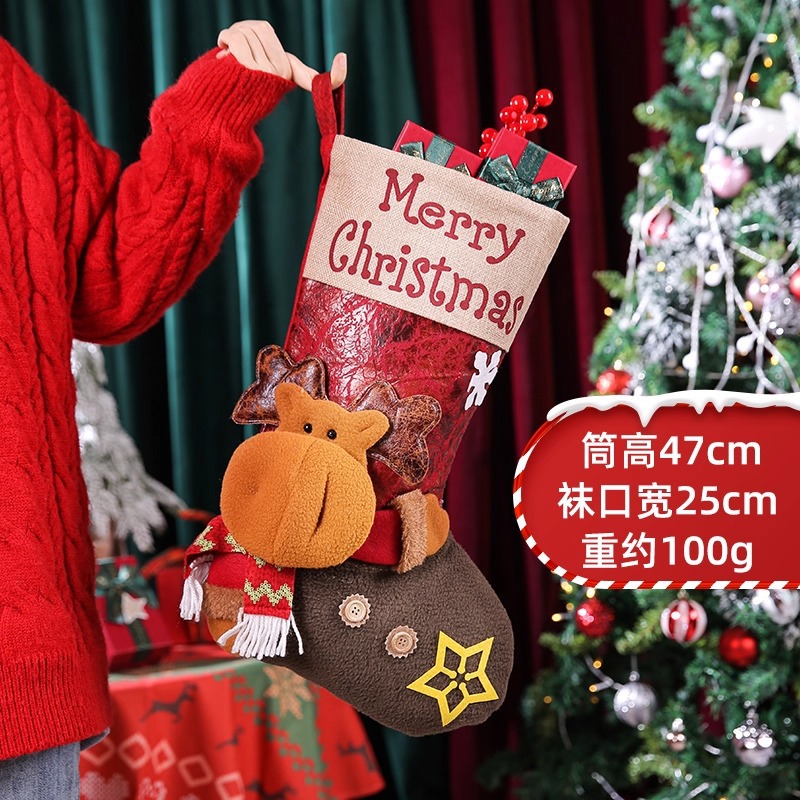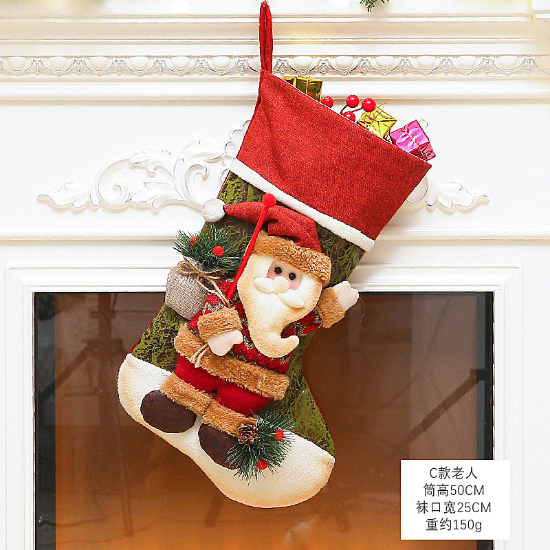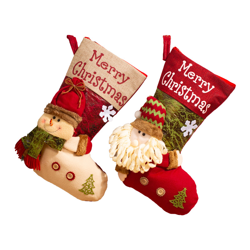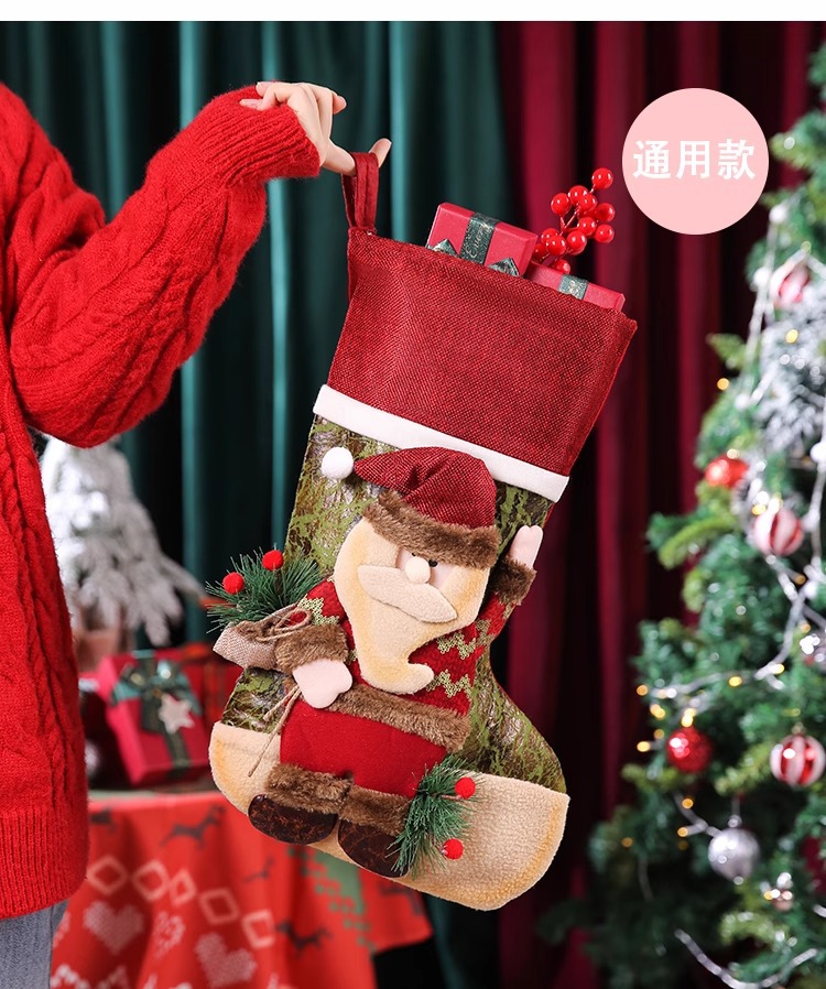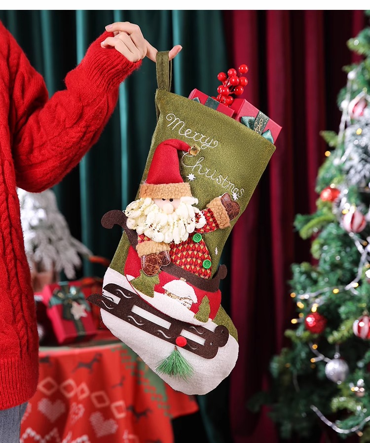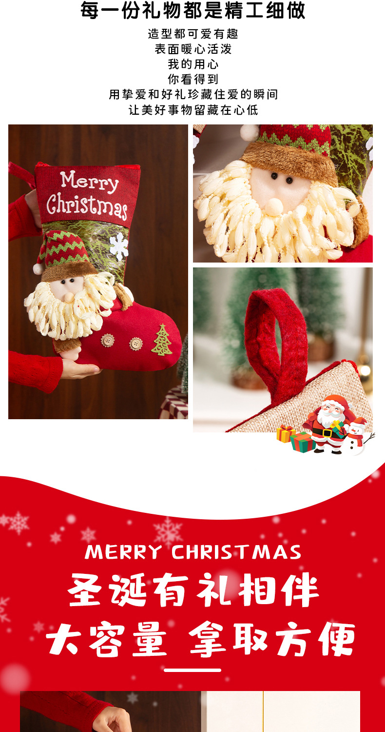 新款圣诞袜糖果袋圣诞节装饰品卡通粉色雪人手提袋节日挂件