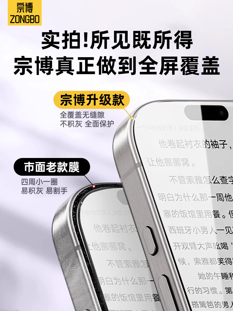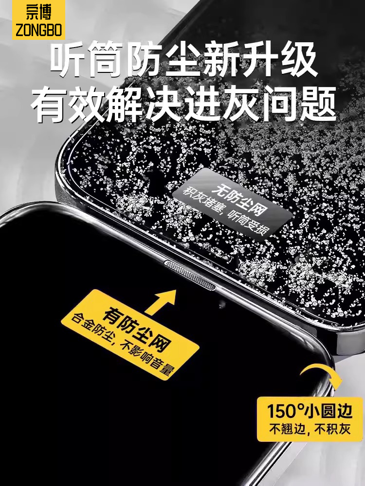 康宁防摔适用于苹果15钢化膜13/16适用iPhone17promax新款15pro手机膜14全屏Plus防尘X11防窥PM听筒por贴膜12