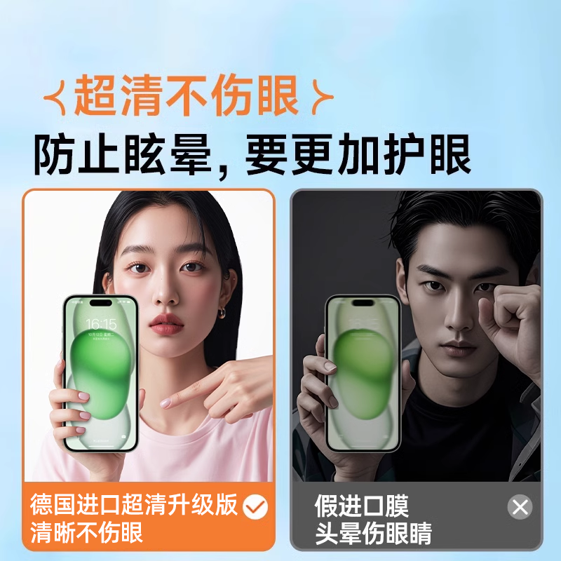 - 新升级【防窥护眼】3片装★德国进口+强效防爆抗指纹