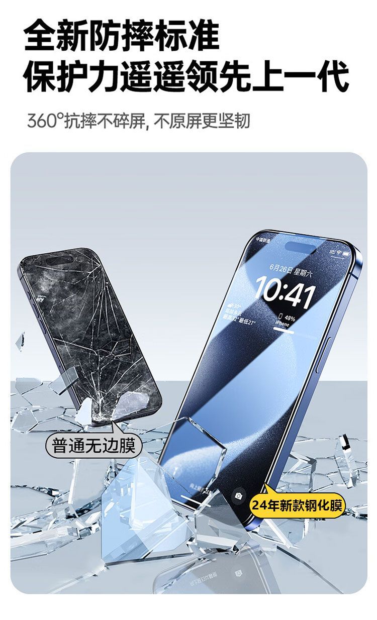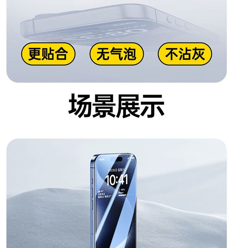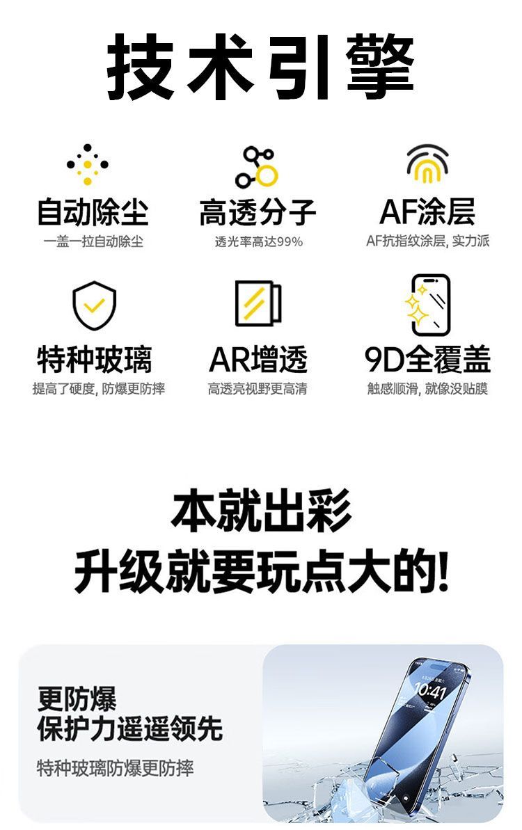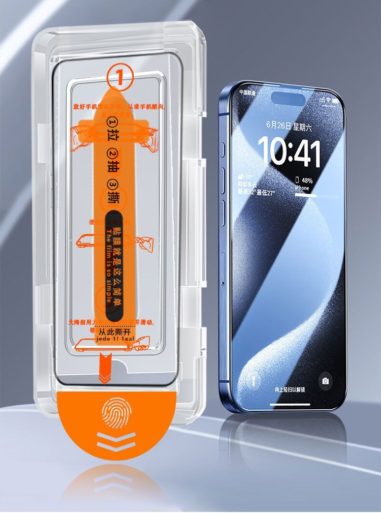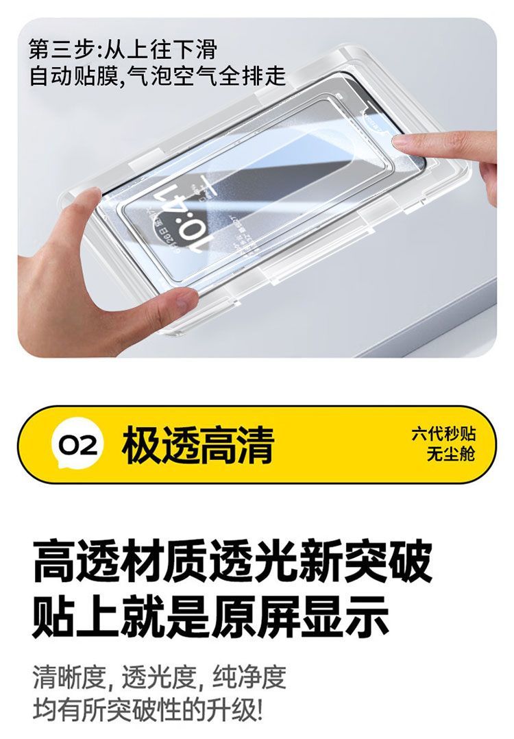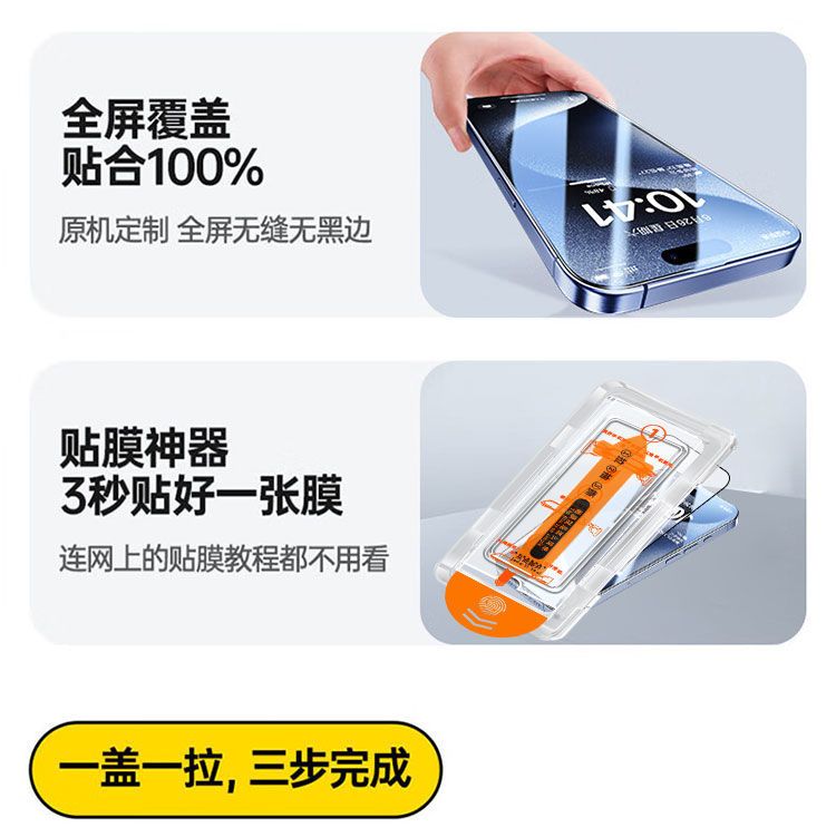苹果17手机膜防窥膜秒贴盒iPhone16promax高清防尘网钢化膜全屏覆盖15plus/14/13/12/16e无尘舱耐用