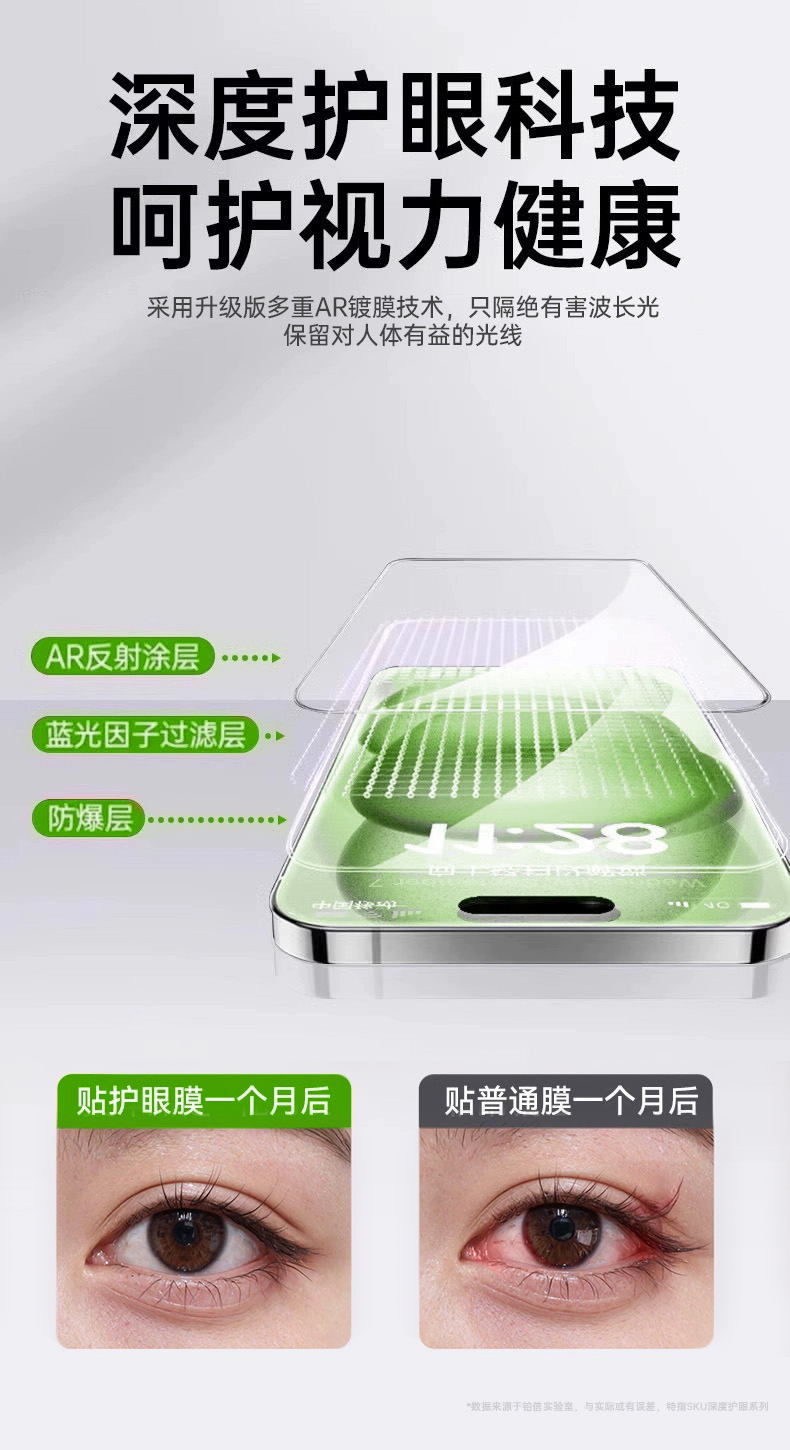 - 新升级【AR防窥护眼】1片装◆德国进口◆强效防爆抗指纹