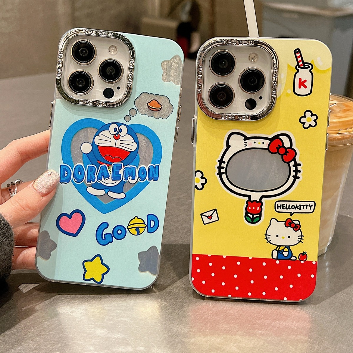 日韩ins牛奶瓶KT猫适用15ProMax手机壳电镀镜框苹果14/13pro防摔