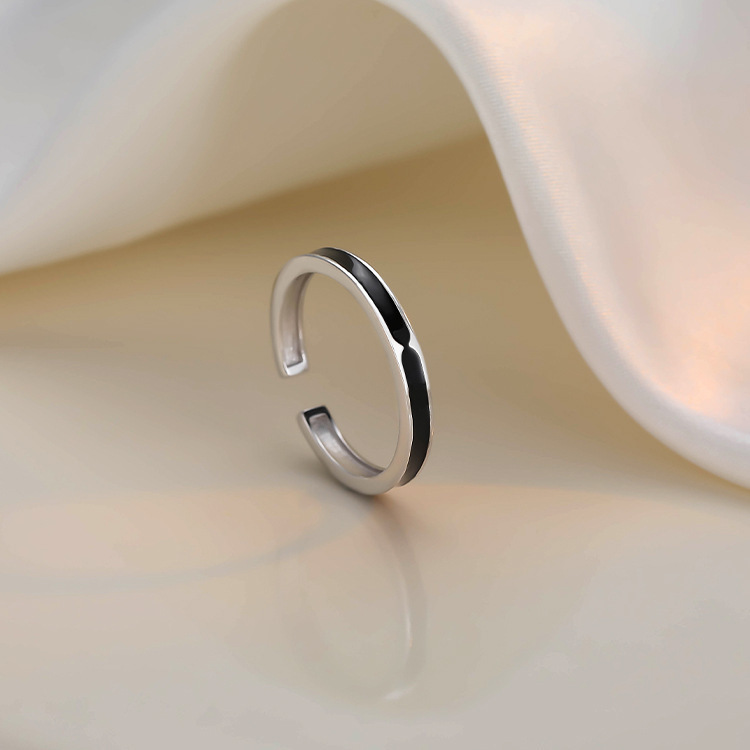 新款黑色戒指女设计小众开口戒指女时尚个性戒指潮流情侣百搭礼物