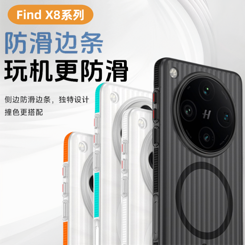 OPPOFindX8新款手机壳FindX8pro防滑边条瓦楞壳镜头magsafe磁吸全包防摔防滑高级感透明磨砂