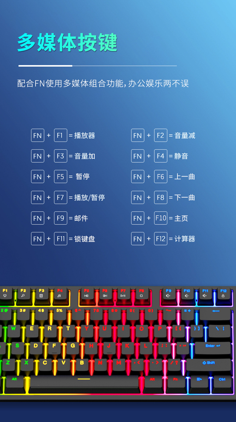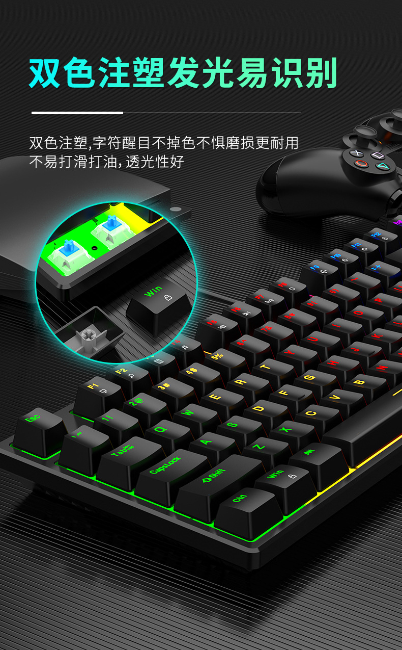 RS6-1白+黑机械键盘【全键无冲插拔红轴】