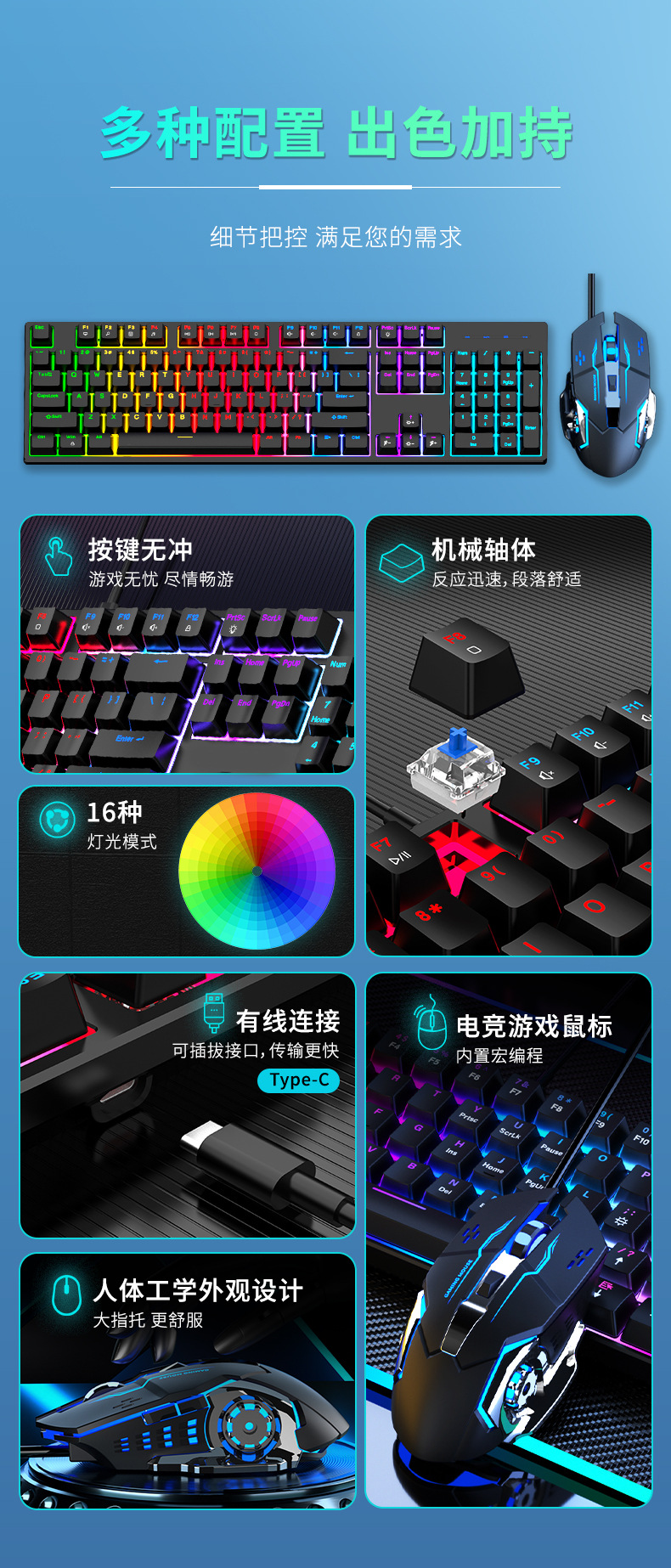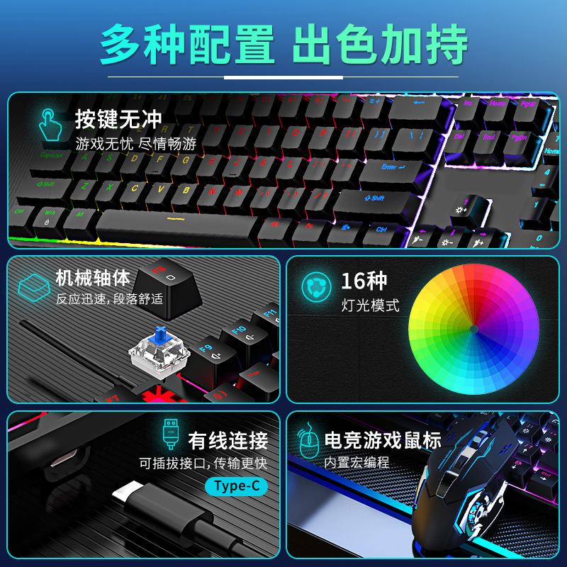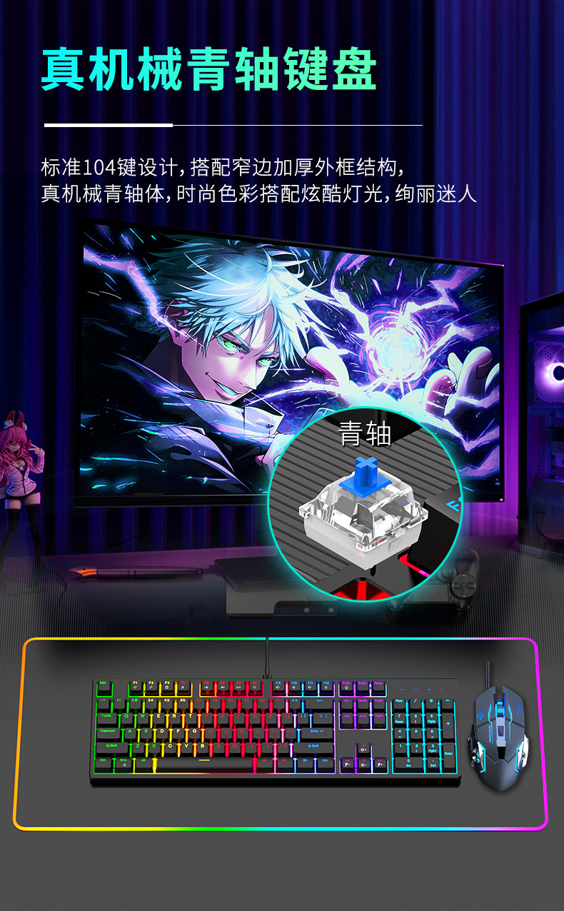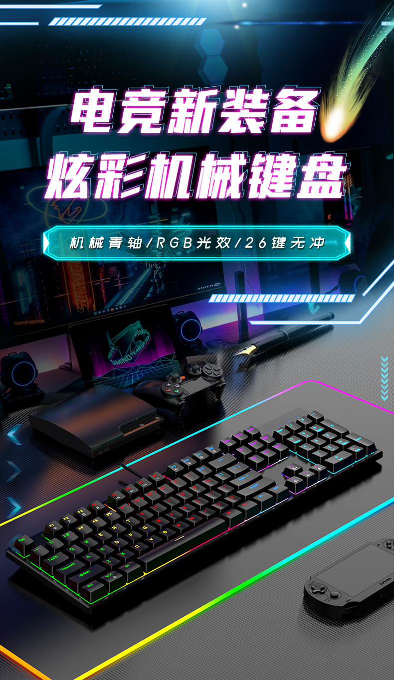 有线真机械键盘RGB青轴104键游戏电竞办公全键无冲