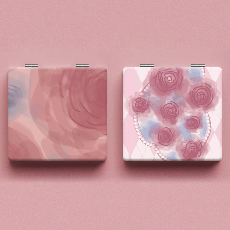 ins简约玫瑰学生手持化妆镜随身便携折叠双面迷你补妆翻盖小镜子