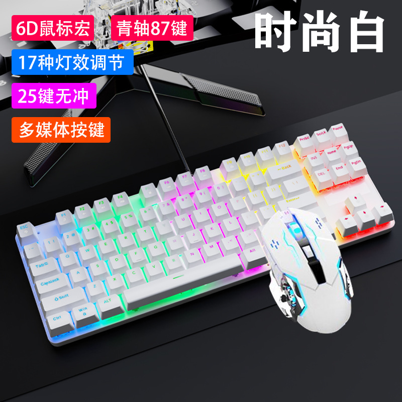 有线真机械键盘87键机械青轴RGB混彩电脑笔记本办公电竞游戏