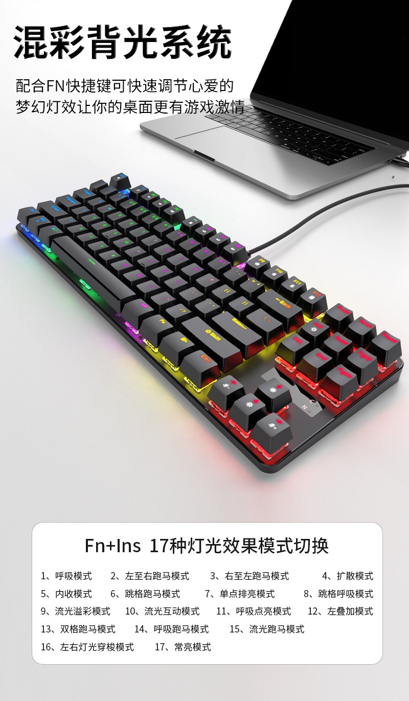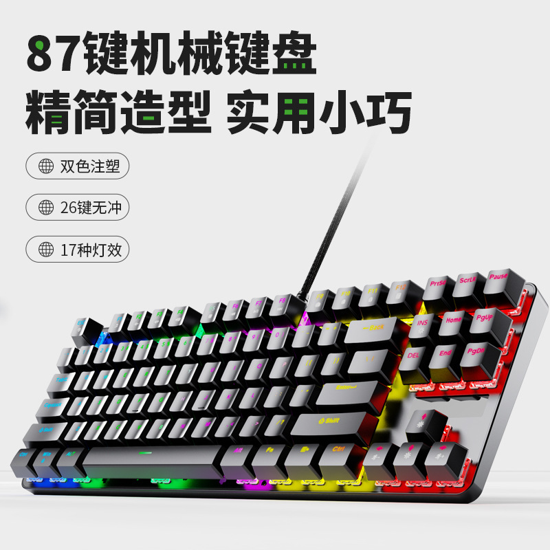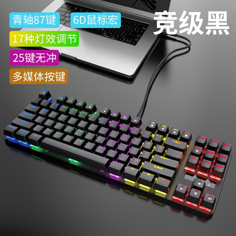 87键有线真机械键盘青轴游戏电竞办公笔记本通用