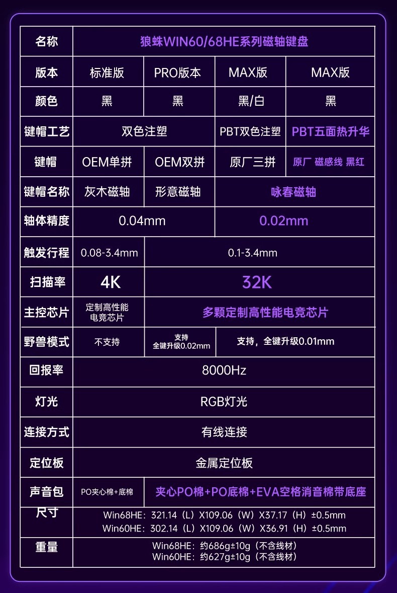 狼蛛WiN60/68HE磁轴键盘客制化有线机械键盘usb电竞台式游戏