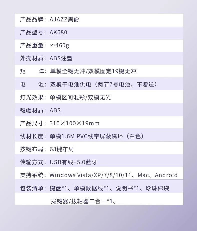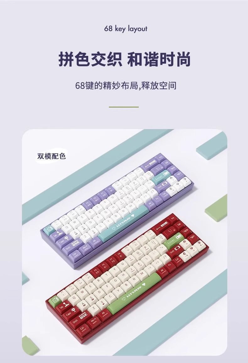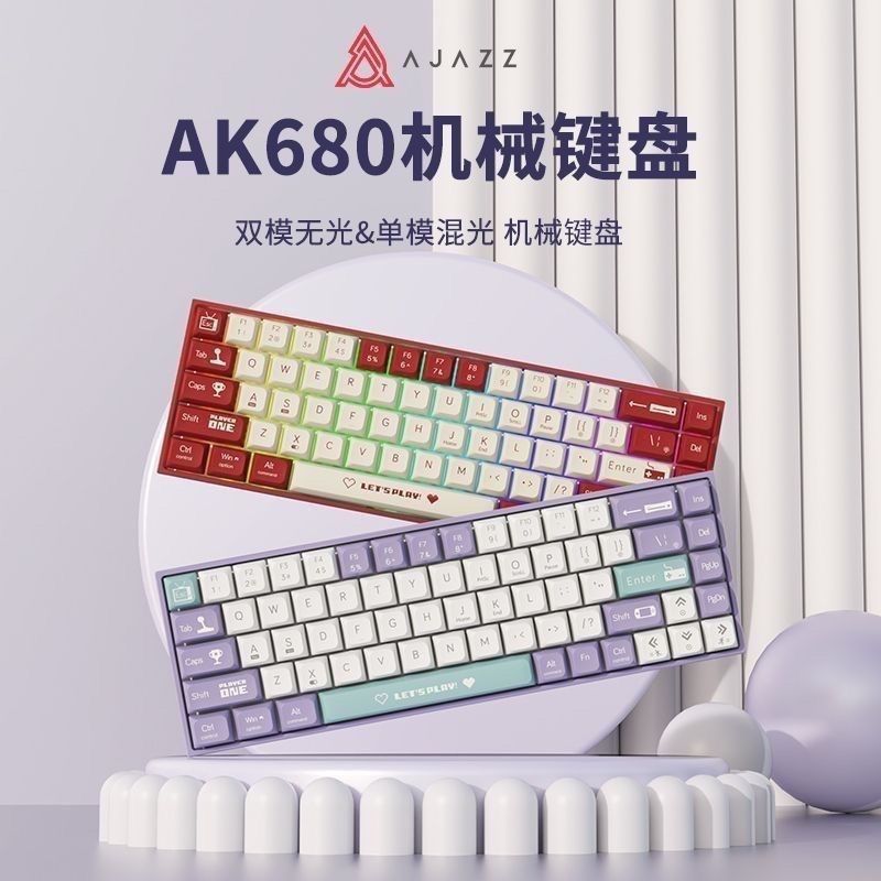 黑爵AK68068机械键盘游戏蓝牙有线无线热插拔双模办公电竞就键盘