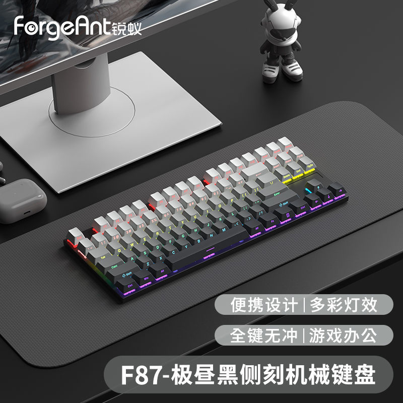 F87机械键盘有线87键电竞办公游戏侧刻彩光键盘茶轴红轴键盘
