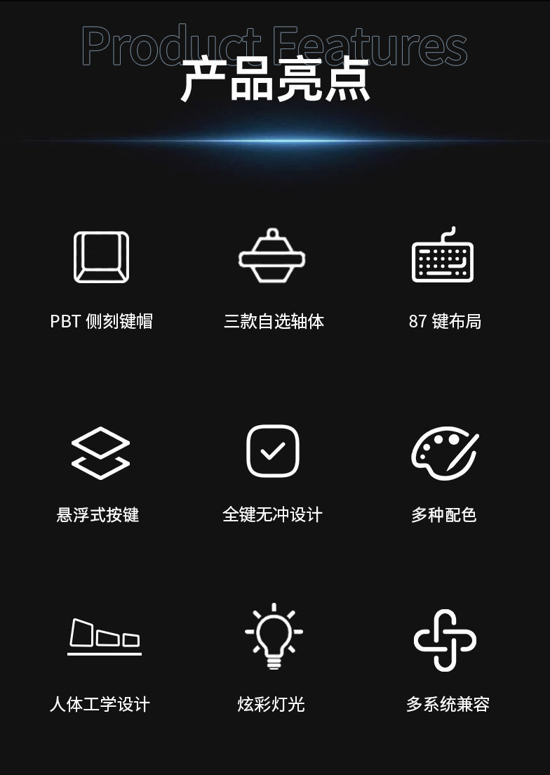 - 青轴~雾蓝侧刻-(混光87键)-有线
