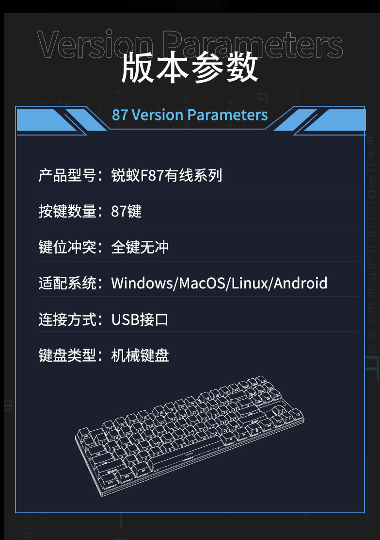 - 红轴~雾蓝侧刻-(混光87键)-有线
