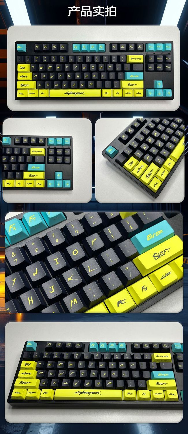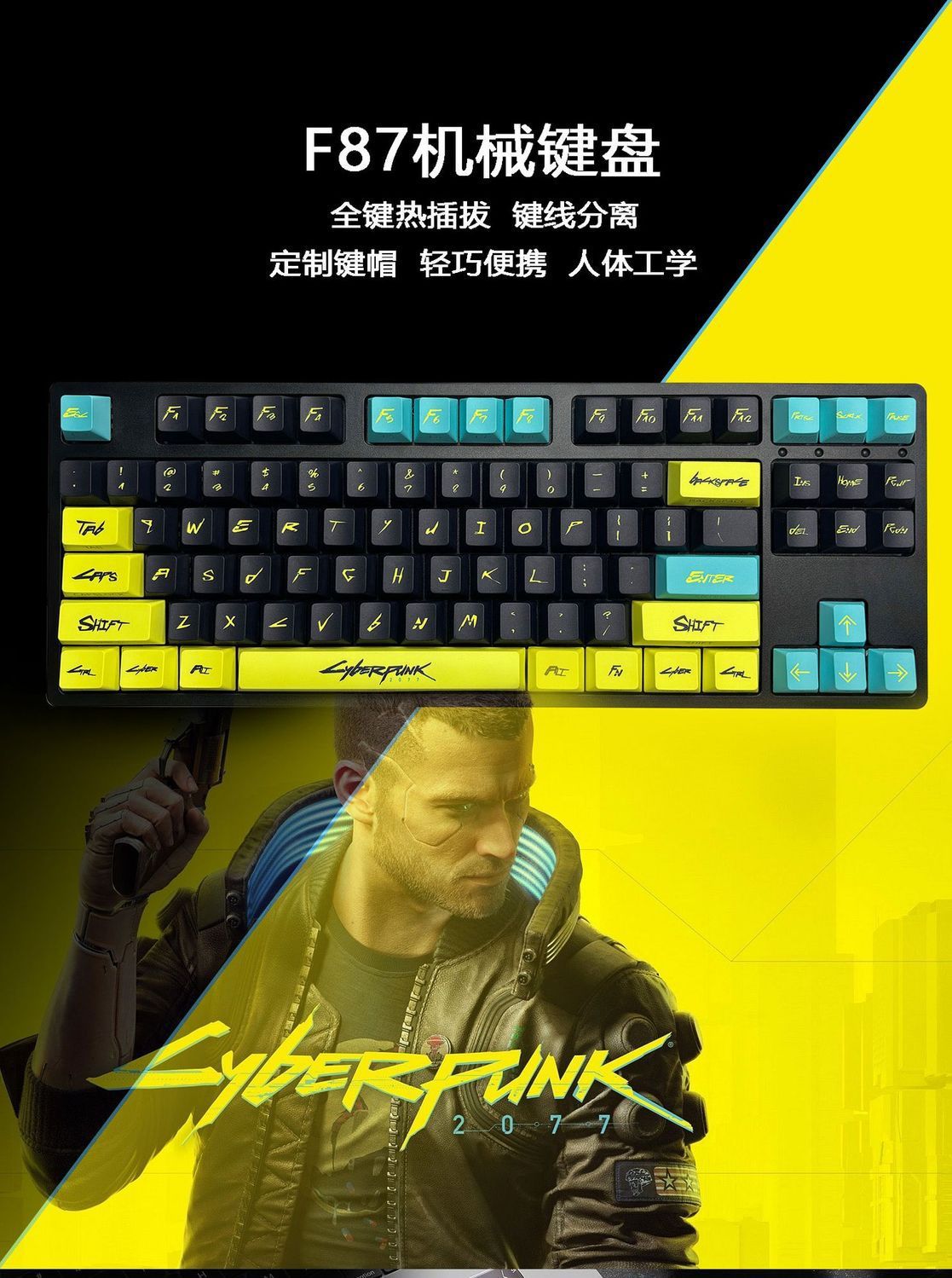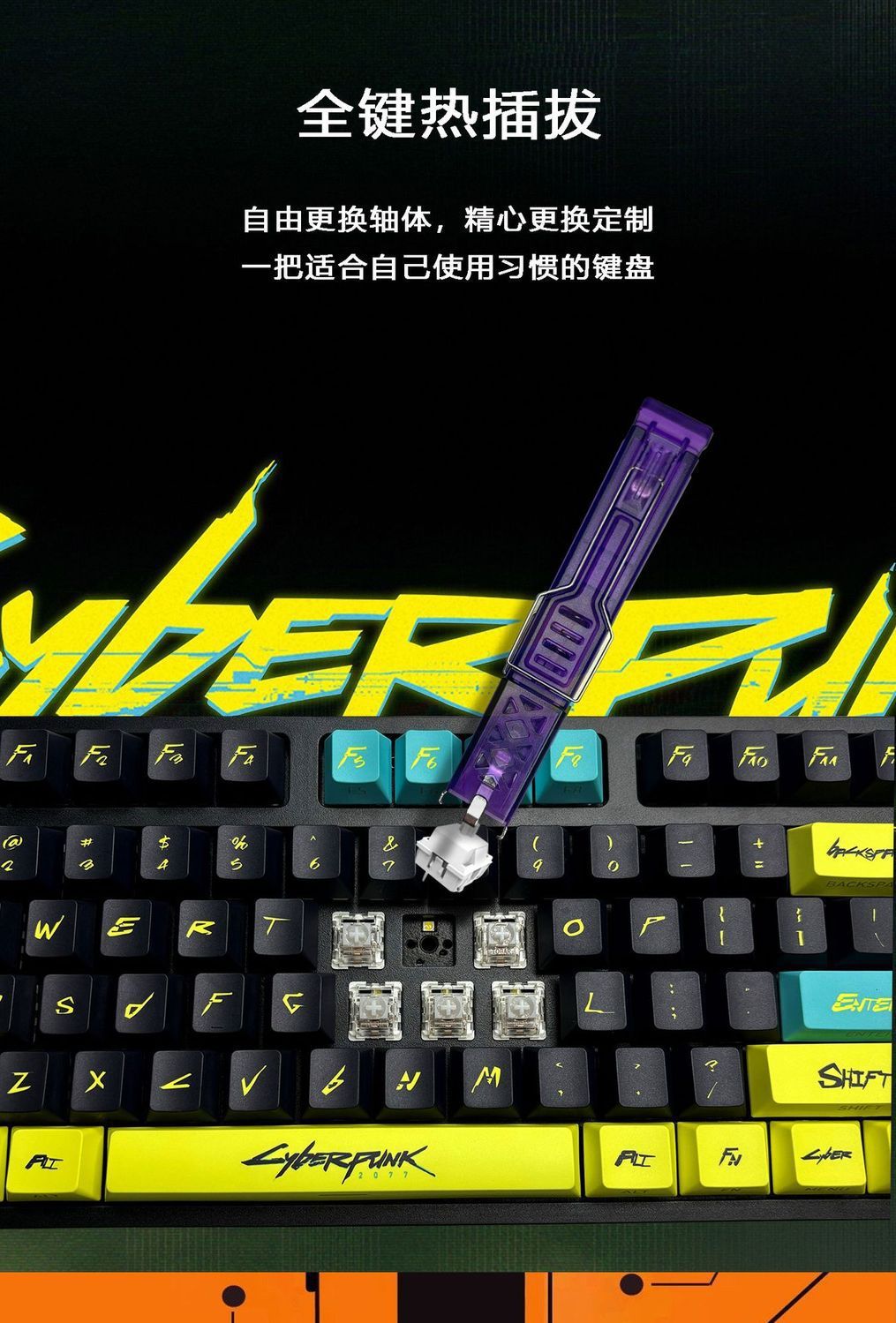 - 青轴~赛博朋克2077黄色三模RGB机械键盘