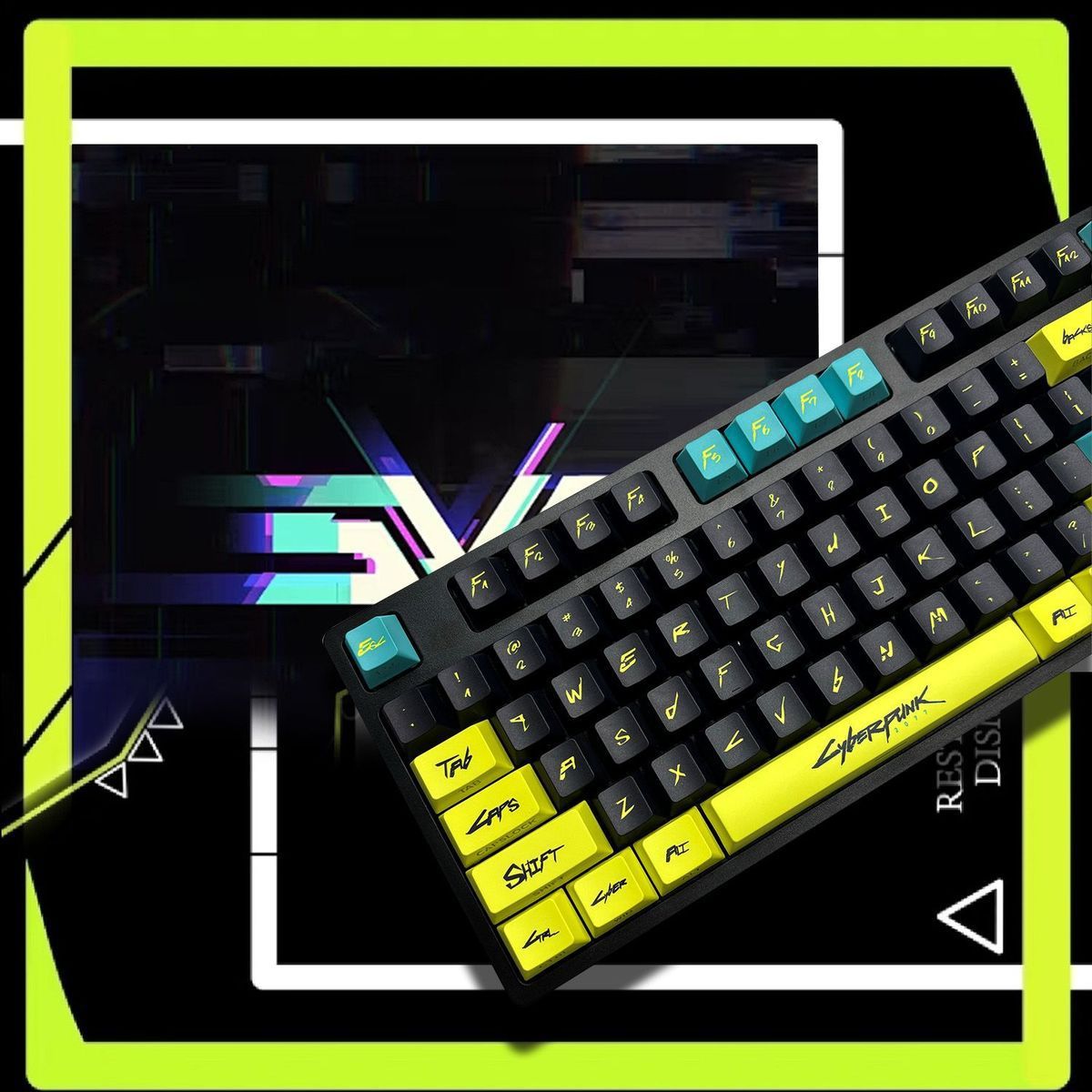 - 黑轴~赛博朋克2077黄色三模RGB机械键盘