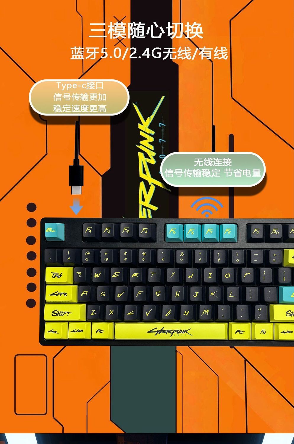 赛博朋克2077三模蓝牙热插拔办公游戏无线有线客制化87键机械键盘